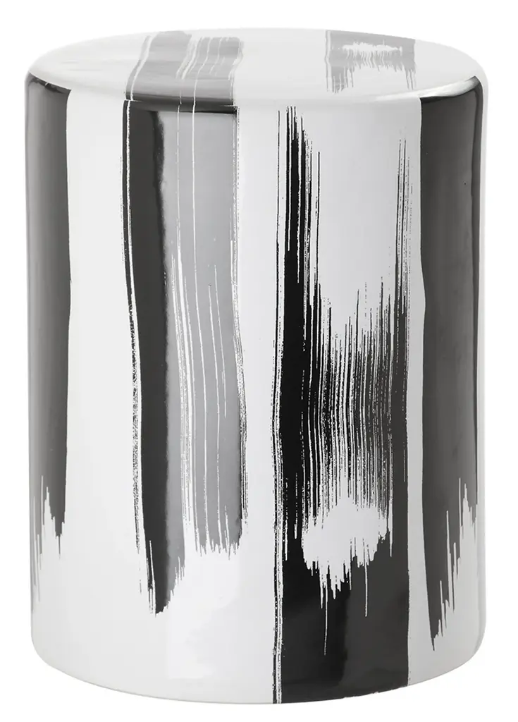 Inspired by contemporary art, this stunning outdoor ceramic garden stool is a modern spin on the traditional garden accessory. Perfect as a extra seat or as a side table, it's monochromatic hues make it a versatile canvas in any outdoor living room. Wipe with damp cloth. Avoid the use of chemicals and household cleaners as they may damage the finish. Suitable for indoor use, avoid extreme temperature and store indoors during long periods of inclement weather.
