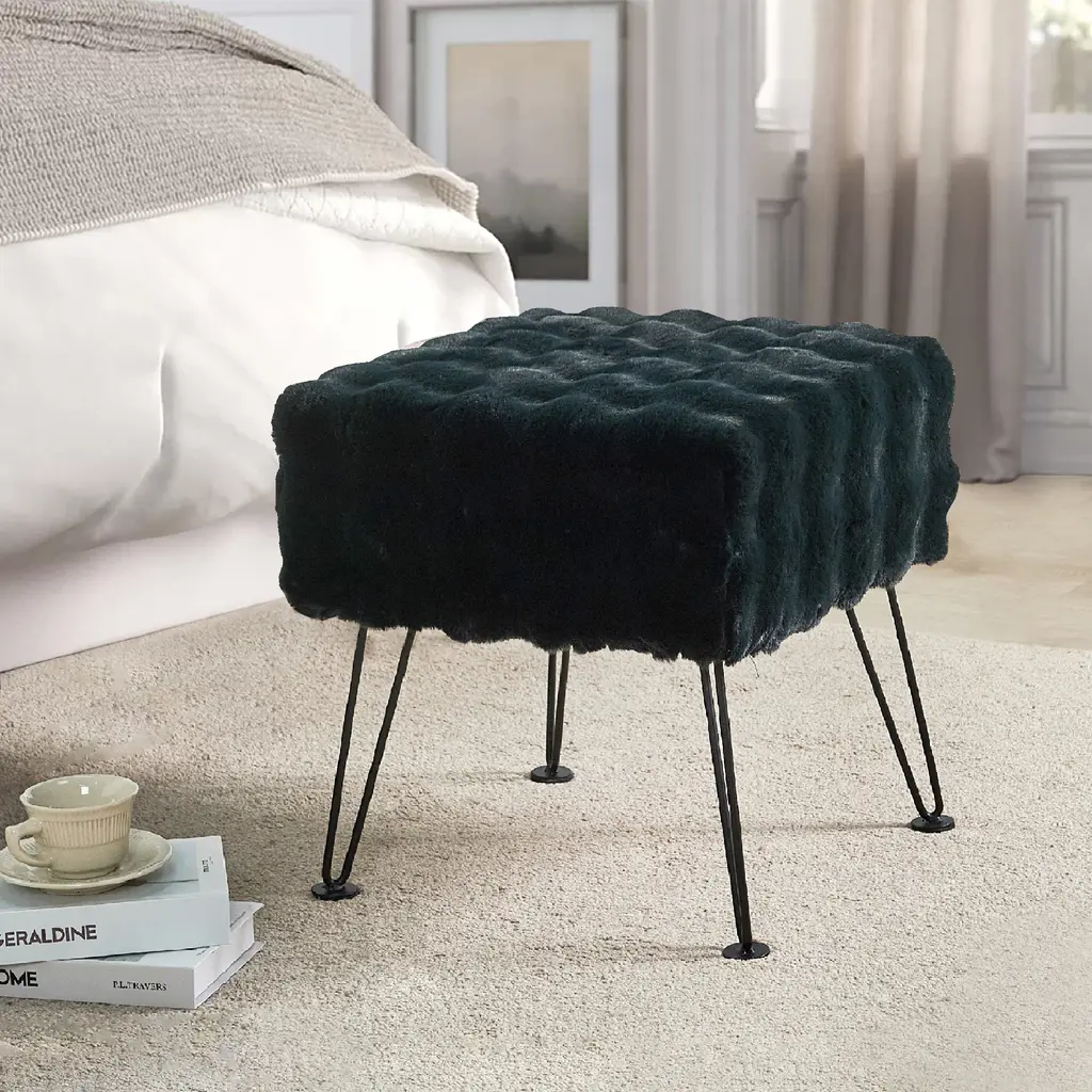 Bubble faux fur stool is a stunning addition to your home decor that combines comfort and style effortlessly. Crafted with attention to detail, this square ottoman features a plush faux fur upholstery that exudes luxury and sophistication. The soft and smooth texture adds a touch of elegance to your living space, while the vibrant color options allow you to customize it to match your existing decor or create a striking accent piece. Use it as extra seating when entertaining guests or as a footrest after a long day. It can serve as a decorative element in a bedroom, living room, office or balcony. Its compact size makes it easy to move around, allowing you to adapt it to different areas of your home effortlessly. Size: 17'' x 17'' x 17'' H