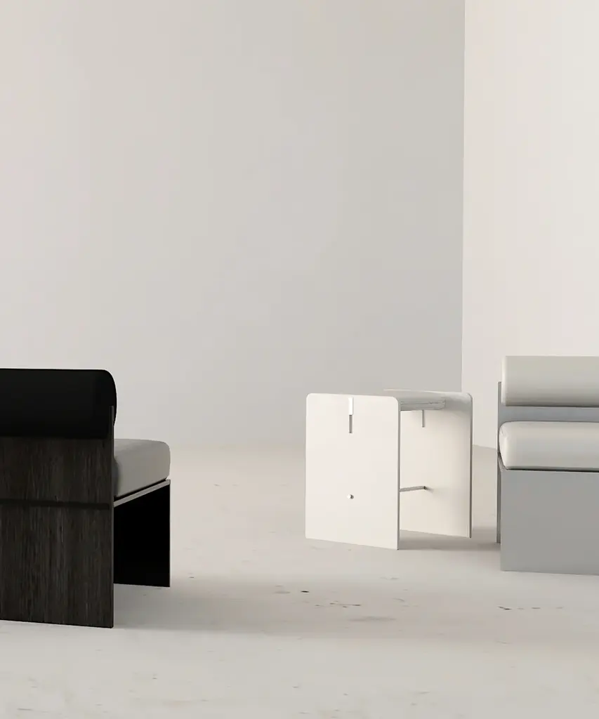 A set of monochromatic seating groups based on the honesty of material and the purity of form. The minimal permutation of the shapes brings diversity to the design from every perspective. Each one of the components is curated with a necessity that fits with others to form a whole. Designed by Jialun Xiong, a furniture, interiors, and accessories designer based in LA.