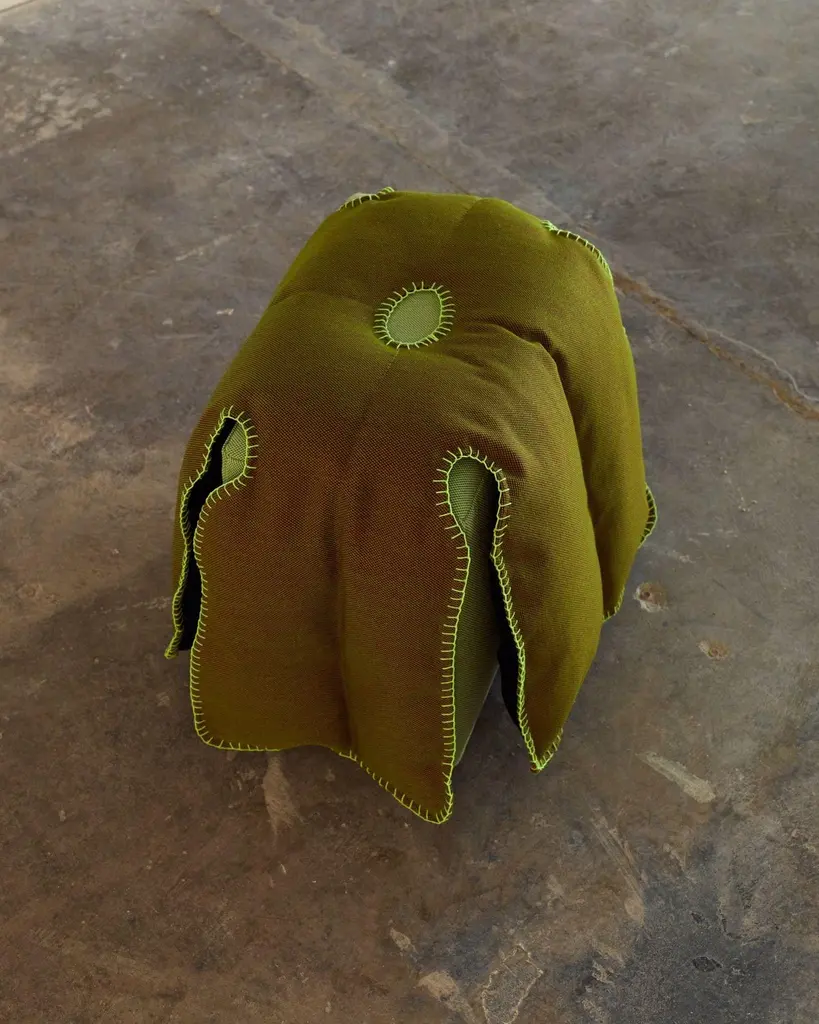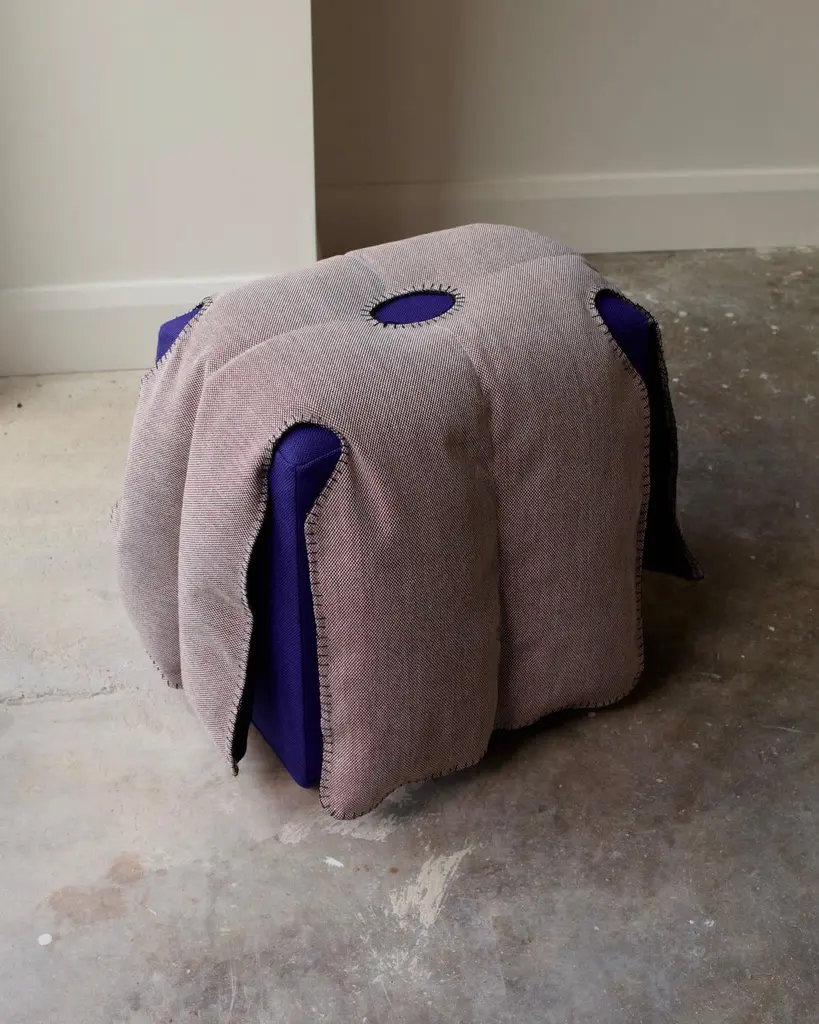 Bumhole Stool by Jaclyn PappalardoDimensions: W 53 x D 46 x H 43 cmMaterials: Plywood, upholstery foam, ball fiber, Kvadrat textiles, Valchromat, steel, thread and magnets.Jaclyn is a designer and maker based in London. Her background in set design informs her creative work as a designer. Colour and texture play an important role in developing each and every project. With a particular interest in the use of seating, Jaclyn looks at chairs not only as a functional object but rather as a study of body, shape and language. Her work incorporates unconventional design techniques that stretch far from traditional craftsmanship. Exploring new techniques and material driven processes such as metal forming and non-traditional upholstery, she builds on similar profiles and repetitive patterns in the aim of creating something timeless. Jaclyn’s work has been published in Arcipelago, Modern House, Dezeen, Vogue and Luncheon magazine. Represented by The Radford Gallery & Fels World gallery in London UK. Caselli 11-12 Gallery in Milan IT, works alongside private commissions for residences, retail stores, and galleries.