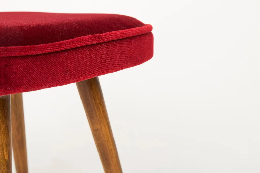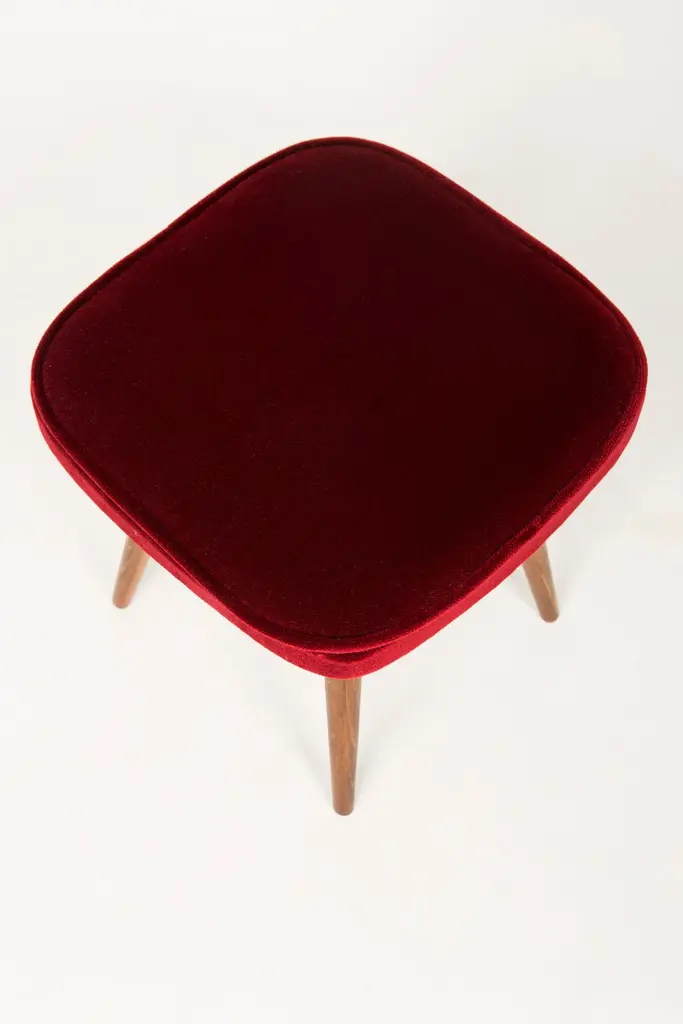 Stool from the turn of the 1960s and 1970s. Beautiful soft velvet burgundy upholstery. The stool consists of an upholstered part, a seat and wooden legs narrowing downwards, characteristic of the 1960s style. We can prepare this stool also in another option of fabric and wood.
