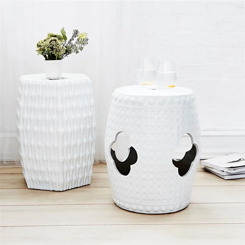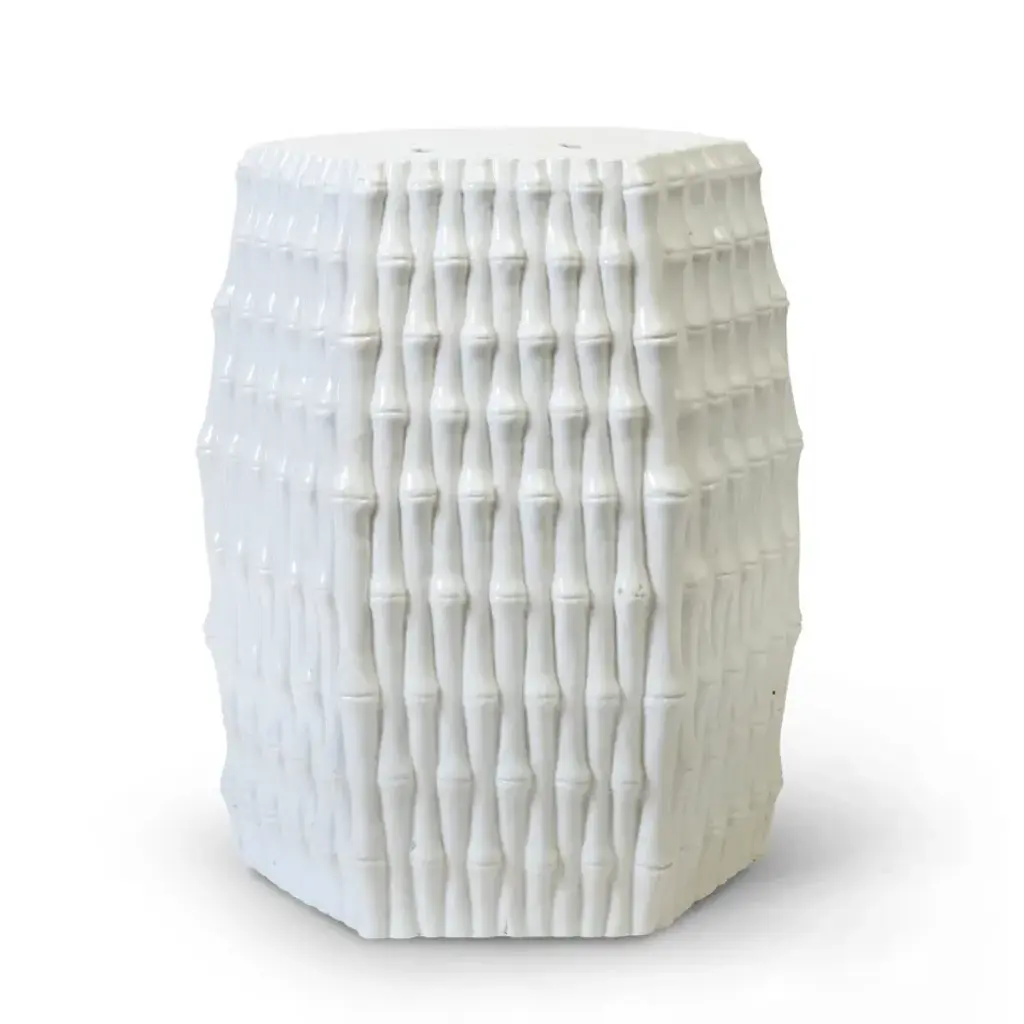 Burma Global Bazaar Glazed White Porcelain Bamboo Stool