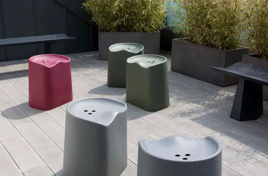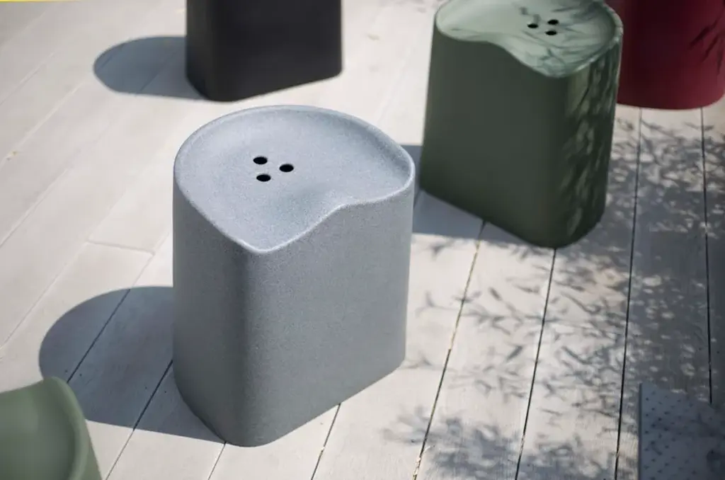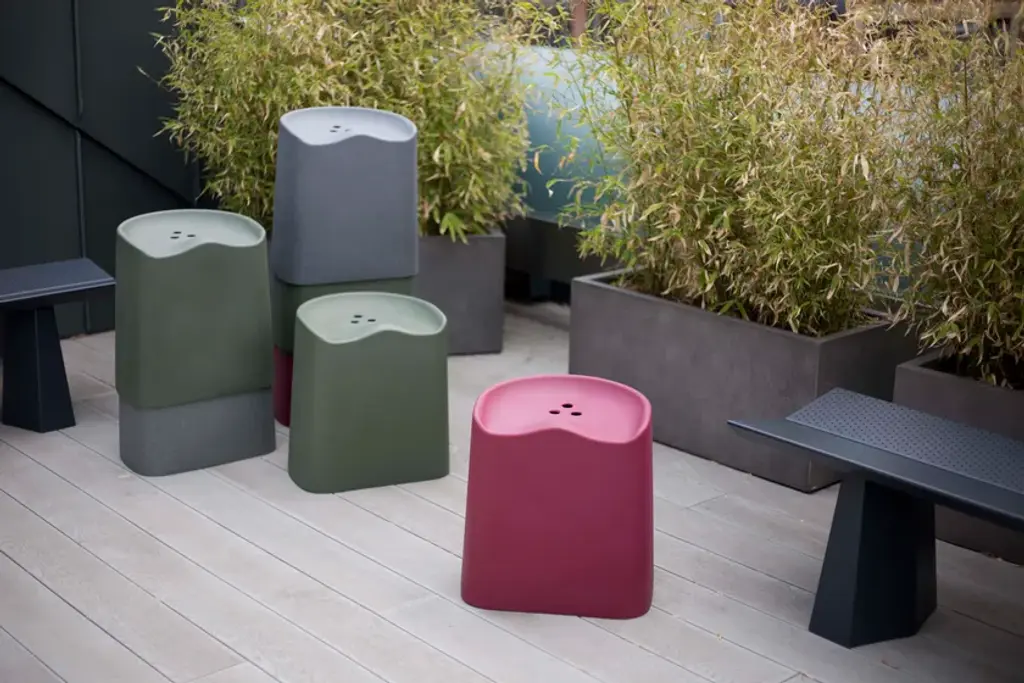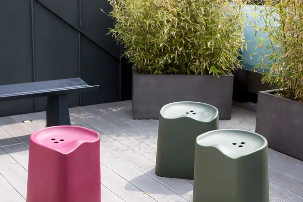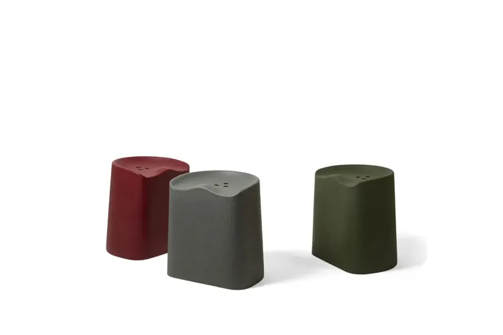 BUTT is a lively and versatile stool, suitable for both indoor and outdoor use thanks to its UV-stable plastic, originally developed for marine use.This single-material stool is made of fully recyclable, UV-stable plastic originally developed for marine applications. The versatile BUTT Stool is ideal for indoor and outdoor use. Its stackable design features three practical lifting holes, reminiscent of a bowling ball, and is available in six finishes.This re-edition of the BUTT reduces stacking height, improving storage efficiency.Materials:PolyethyleneColours:Black, burgundy, speckled grey, khaki, navy blue, white