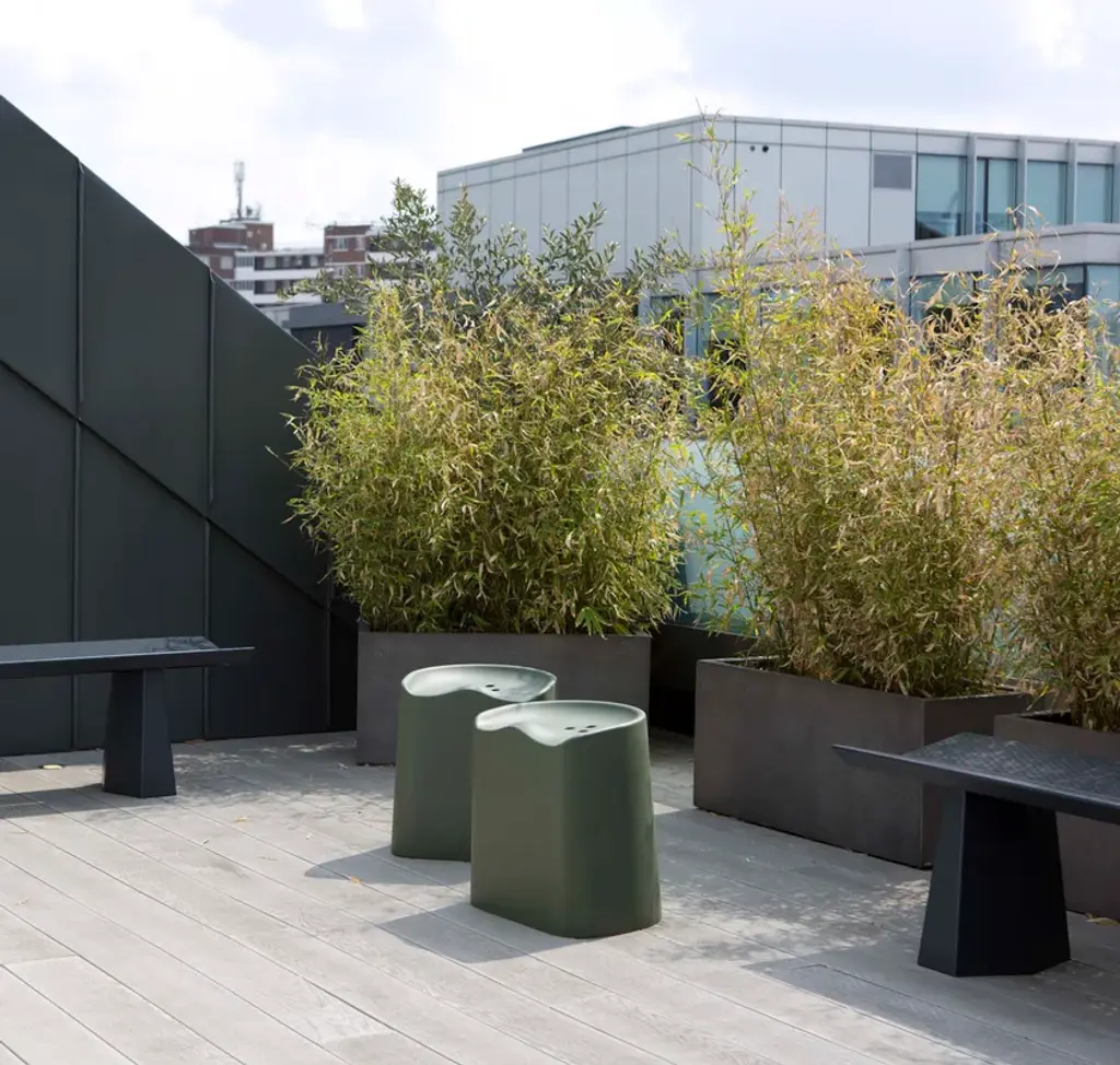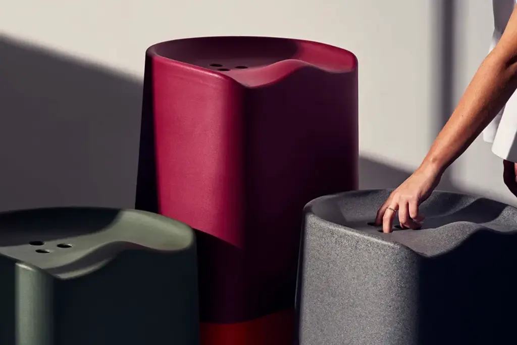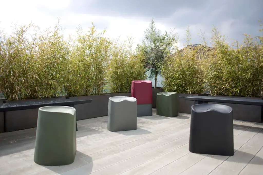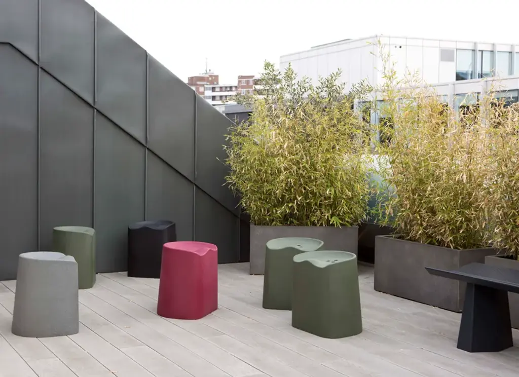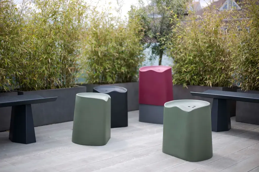 BUTT is a lively and versatile stool, suitable for both indoor and outdoor use thanks to its UV-stable plastic, originally developed for marine use.This single-material stool is made of fully recyclable, UV-stable plastic originally developed for marine applications. The versatile BUTT Stool is ideal for indoor and outdoor use. Its stackable design features three practical lifting holes, reminiscent of a bowling ball, and is available in six finishes.This re-edition of the BUTT reduces stacking height, improving storage efficiency.Materials:PolyethyleneColours:Black, burgundy, speckled grey, khaki, navy blue, white