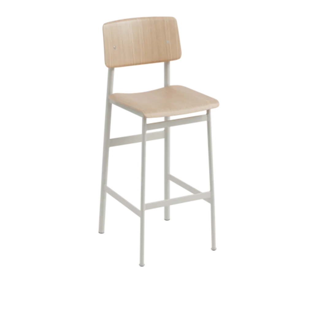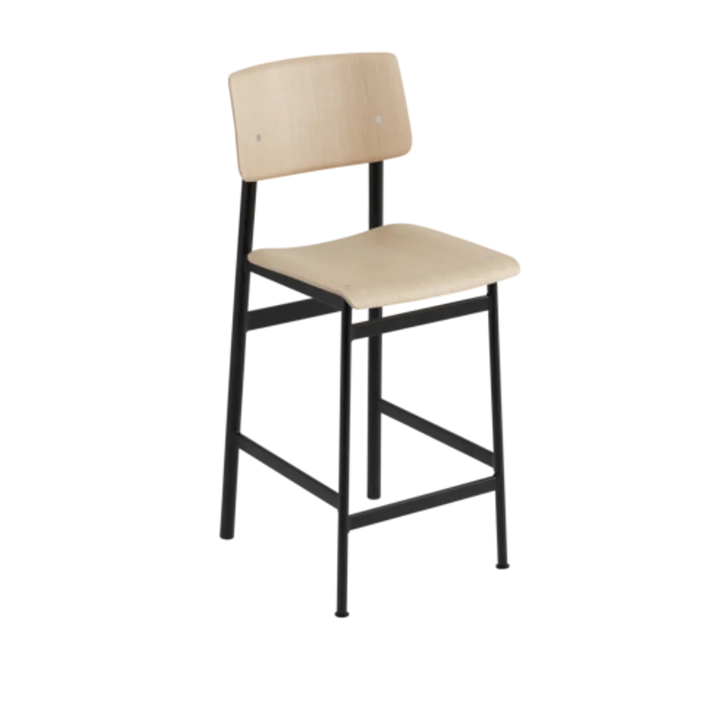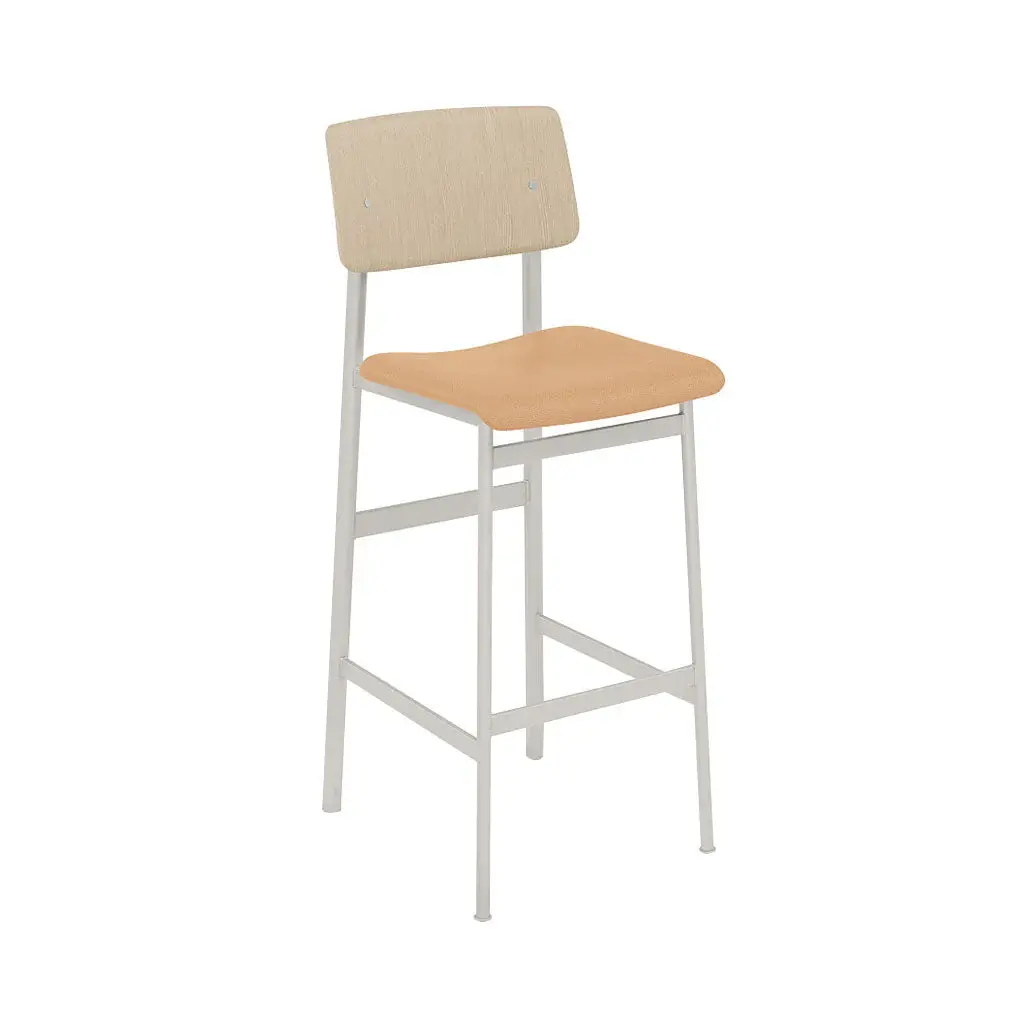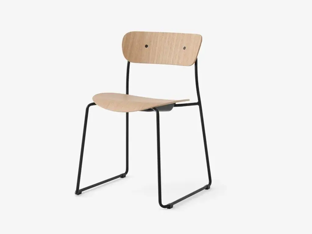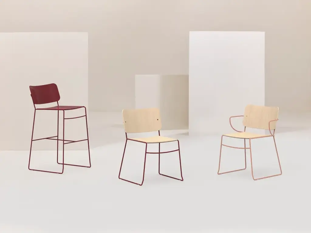Button Down 7C25 is a high sled-base stool made of ash plywood.Button Down is a collection defined by the distinctive button-like joint between the frame and backrest—a detail that inspired the name, echoing the timeless elegance of the classic button-down shirt.The slender steel rod frame supports either upholstered or wooden beech or ash seats and backrests, making this a versatile chair well-suited to a variety of contract settings.