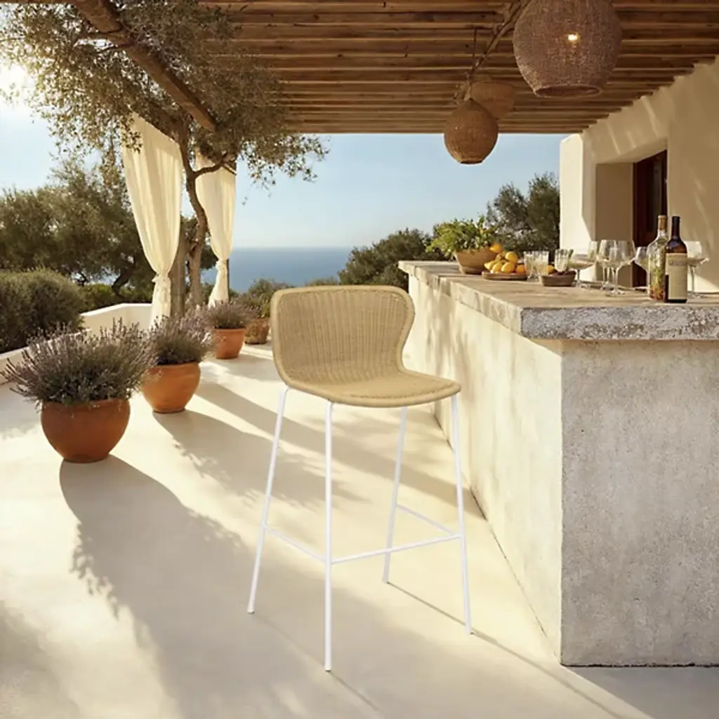 Elevate the look of your outdoor home bar with the Feelgood Designs C603 Outdoor Stool. This sleek elevated bar seat is built with a powder-coated steel frame and polyethylene wicker seat, a unique blend of stability with a breathable design. This elevated bar seat combines traditional craftsmanship with modern-day design, resulting in an upscale look for any bar space. Use this elevated bar seat to enjoy more of your home bar setup.