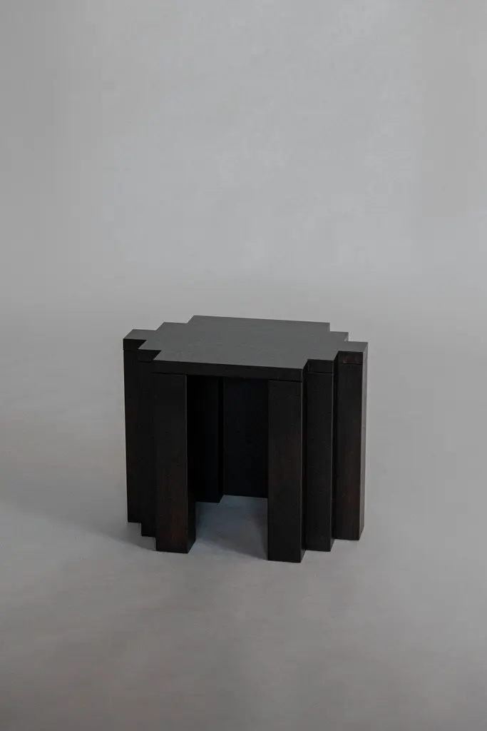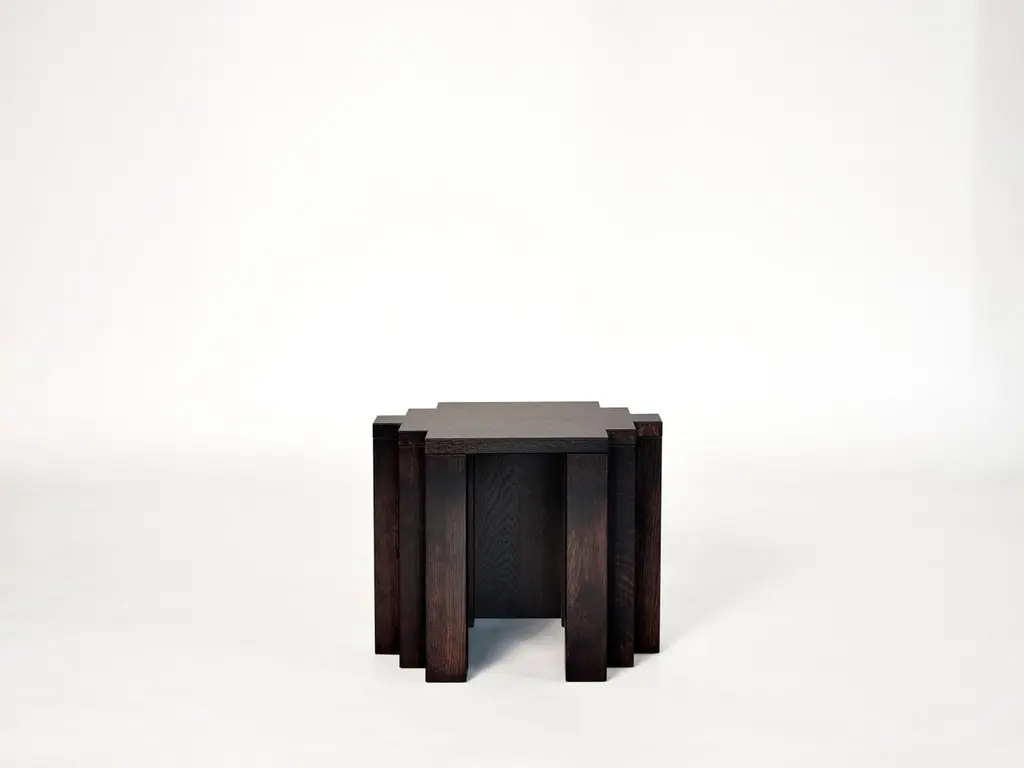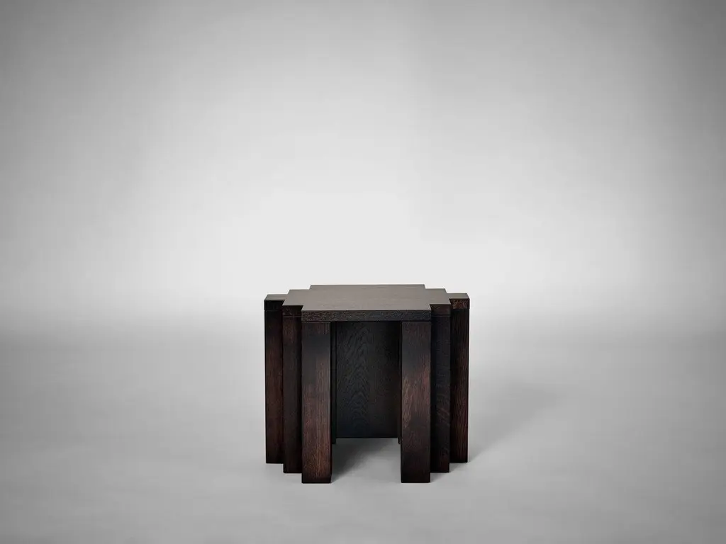 Cadence 55 Stool in Dark Brown European Oak by Mokko AmsterdamDimensions: D 38,5 x W 55 x H 45 cm. Materials: European oak.Available in different material options. Designed by Aad Bos and crafted in the Netherlands. Please contact us.The Cadence stool is inspired by the simplicity and power of the rhythmic stepped brickwork visible in the architecture of Amsterdam's 'South Plan' area; the city development plan designed by H.P. Berlage in 1915. A flow of rhythmic volumes and shade lines. The Cadence stool functions as seating matching the table collection or as an individual side table.Designed by Aad Bos and crafted in the Netherlands out of solid European oak or American walnut. The product is made to order with a production time of 7-8 weeks and customizable in design, size, material and color.We welcome you to our studio to get a feel for the quality and presence of our objects.Mokko represents a collection of interior objects designed by founder Aad Bos. The Amsterdam-based studio was established in 2017 and creates custom products for interior professionals and design enthusiasts internationally.Objects by Mokko feature a rhythm of monolithic form, created through an iteration of volumes and voids. Architectural elements are balanced, weighed and stripped from excess, until the essence of the inspiration is translated into a sculptural object that is emotionally resonant.With respect for nature and robust furniture building, each piece is made in close collaboration with local carpenters in the Netherlands from high-quality, sustainable materials. All objects are custom-made and conceived as future heirlooms; intended to be valued, used and passed down through generations.