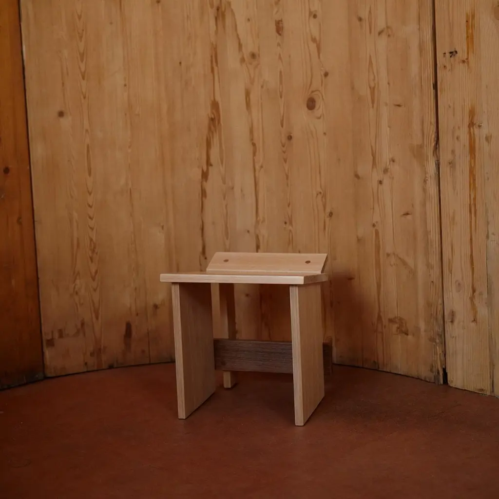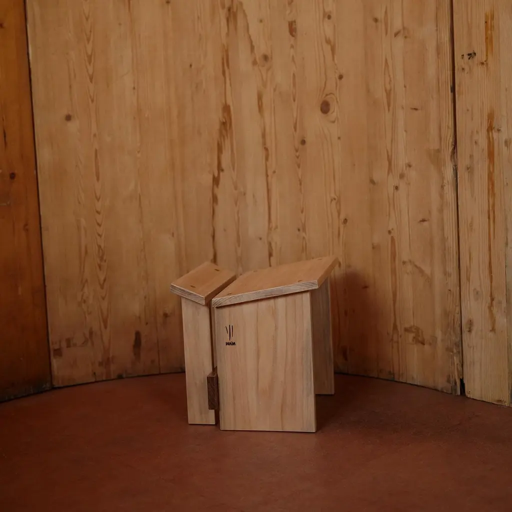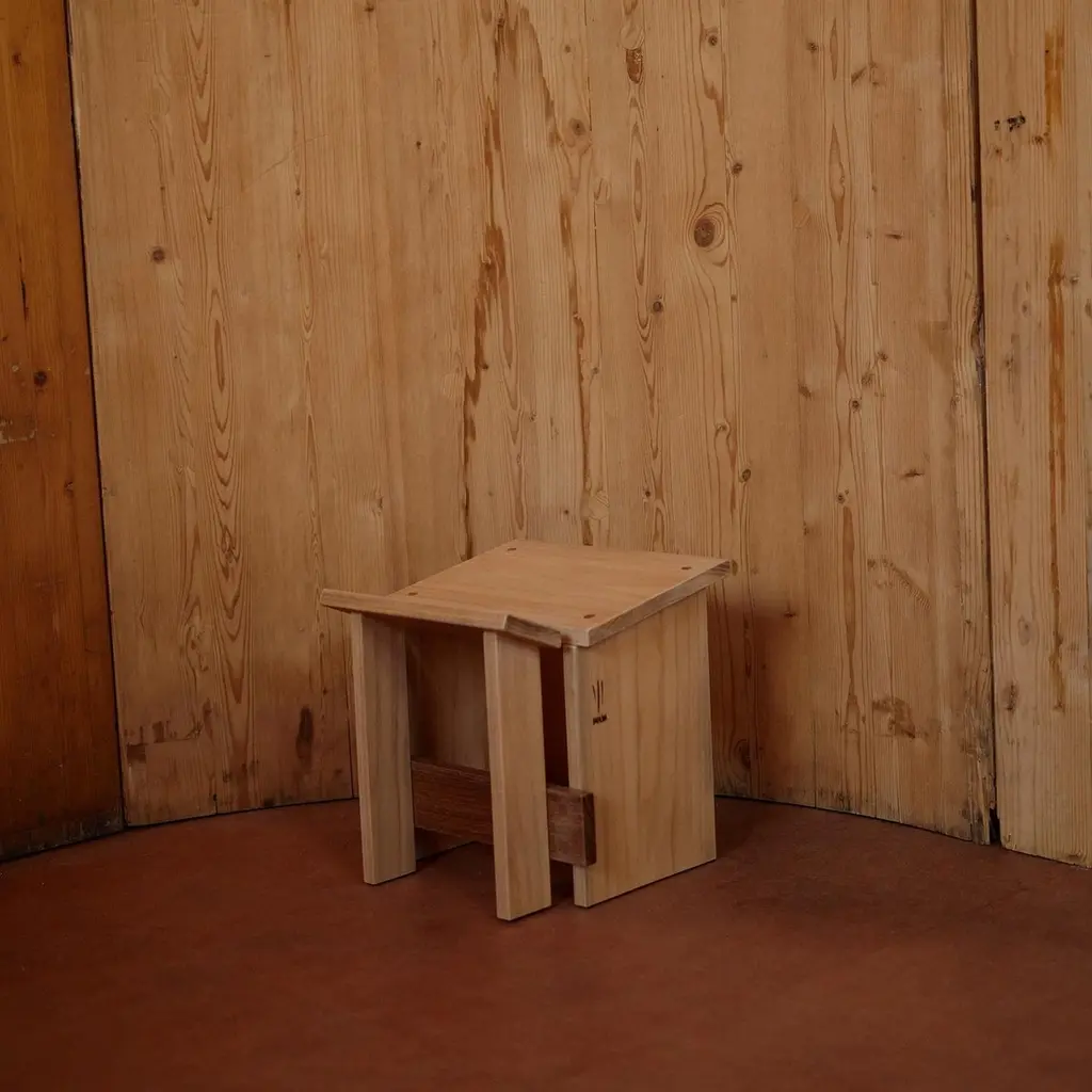Design:Francisco FanucciMaterial:Solid WoodStool designed by Francisco Fanucci in 1988. It is designed around the theme of "sentar brasileiro brazilian seating". It is said to have been inspired by the stools used in the Brazilian countryside to keep warm by a wood stove, a traditional indigenous craft. The angle of the wood on the seat allows the stool to fit and support the body in a position similar to a squatting posture. Small and practical, it can be placed by the fireplace or used as an entryway stool.Due to the assortment of solid wood, there are individual differences.