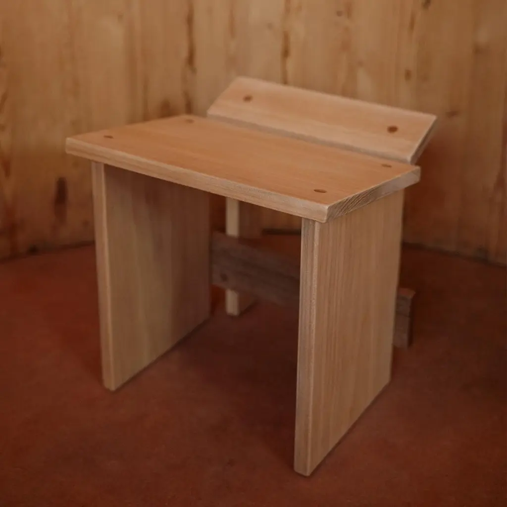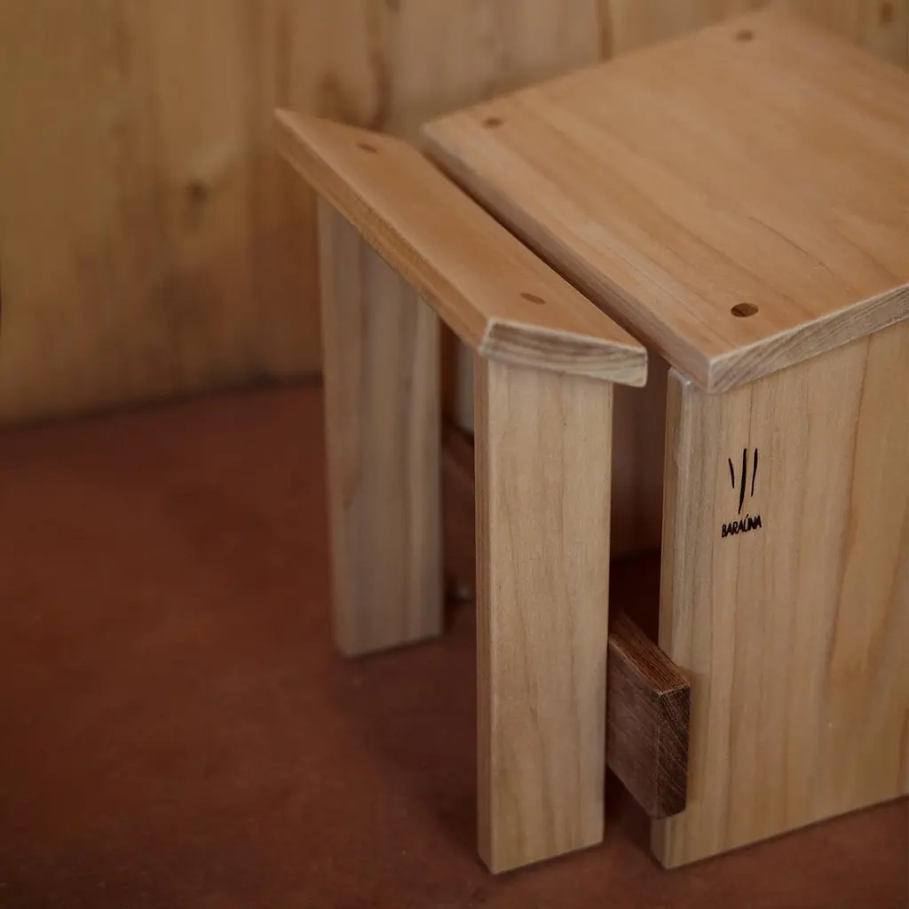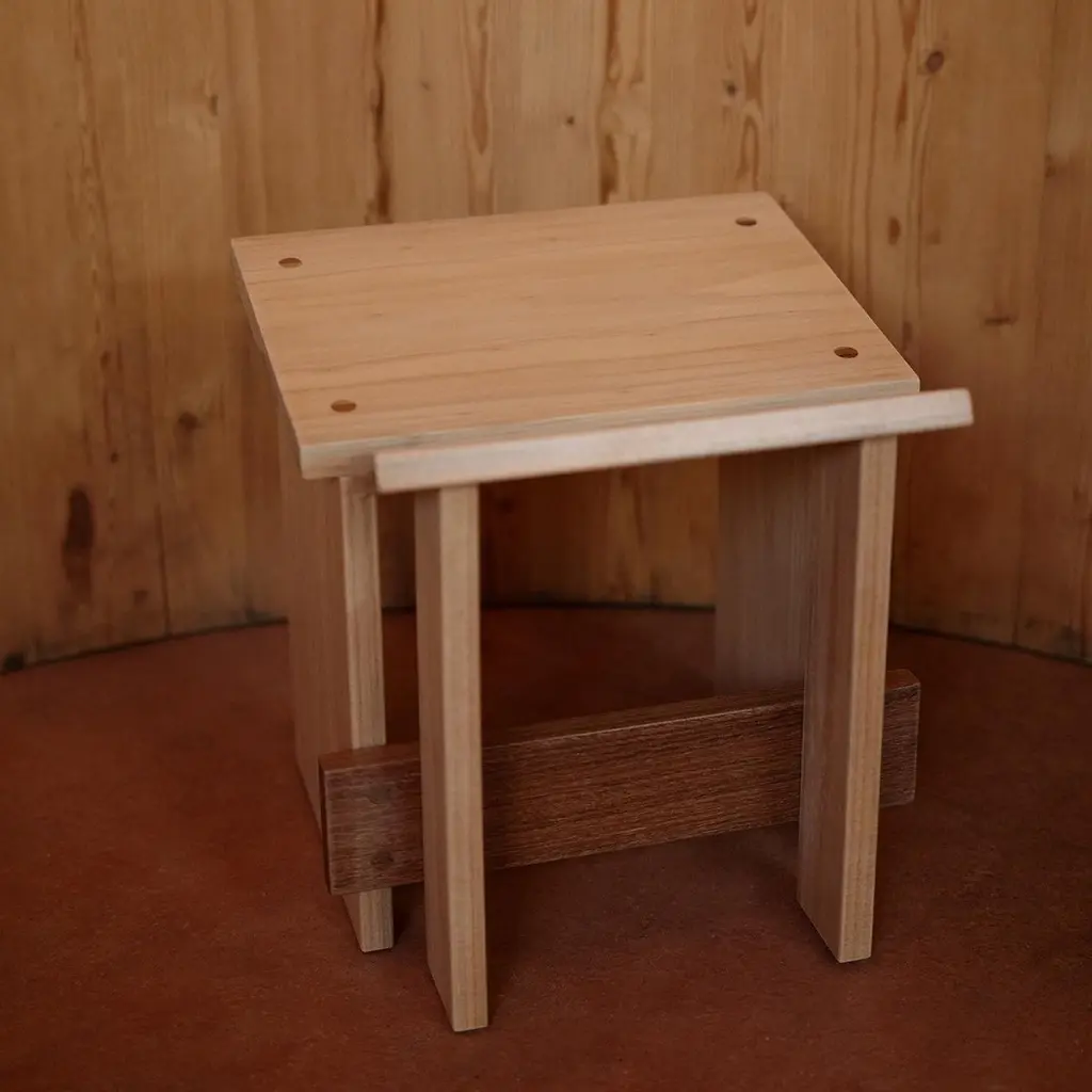 Design:Francisco FanucciMaterial:Solid WoodStool designed by Francisco Fanucci in 1988. It is designed around the theme of "sentar brasileiro brazilian seating". It is said to have been inspired by the stools used in the Brazilian countryside to keep warm by a wood stove, a traditional indigenous craft. The angle of the wood on the seat allows the stool to fit and support the body in a position similar to a squatting posture. Small and practical, it can be placed by the fireplace or used as an entryway stool.Due to the assortment of solid wood, there are individual differences.