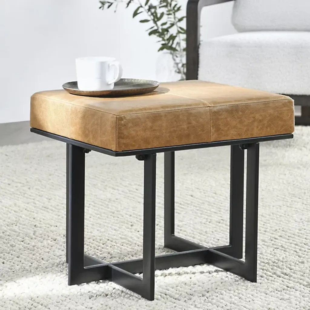 Crafted with premium leather and a durable tube iron frame, the Calvin Stool from Classic Home combines sharp, geometric design with versatile functionality. Its sleek silhouette and modern aesthetic make it a stylish addition to any living space. Use it as an ottoman or as extra seating to enhance both comfort and decor without compromising on a clean, contemporary style. Perfect for living rooms or lounges, this stool brings a touch of sophistication and practicality to your home.