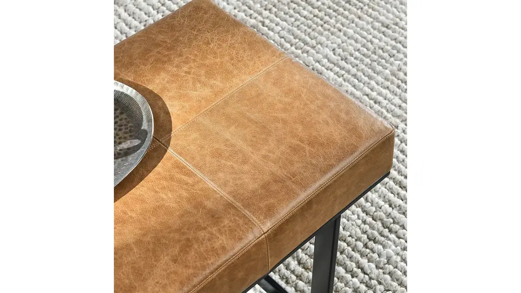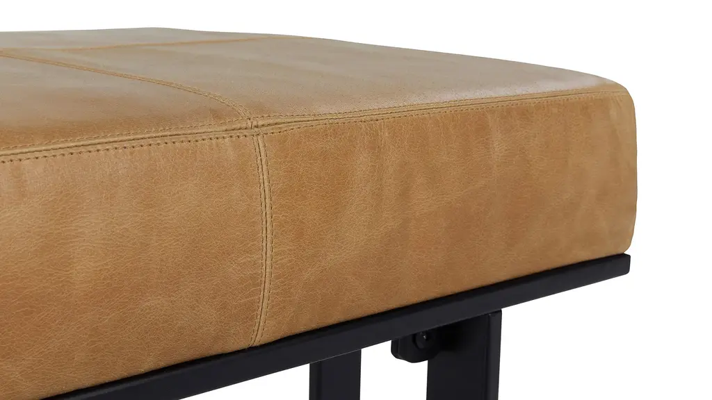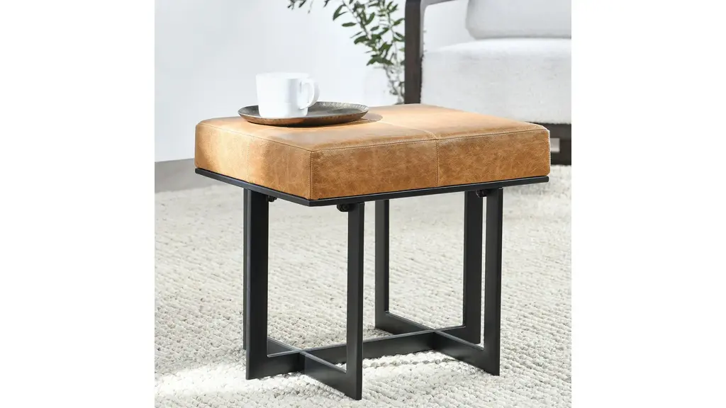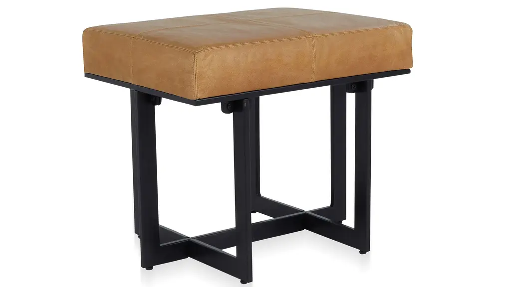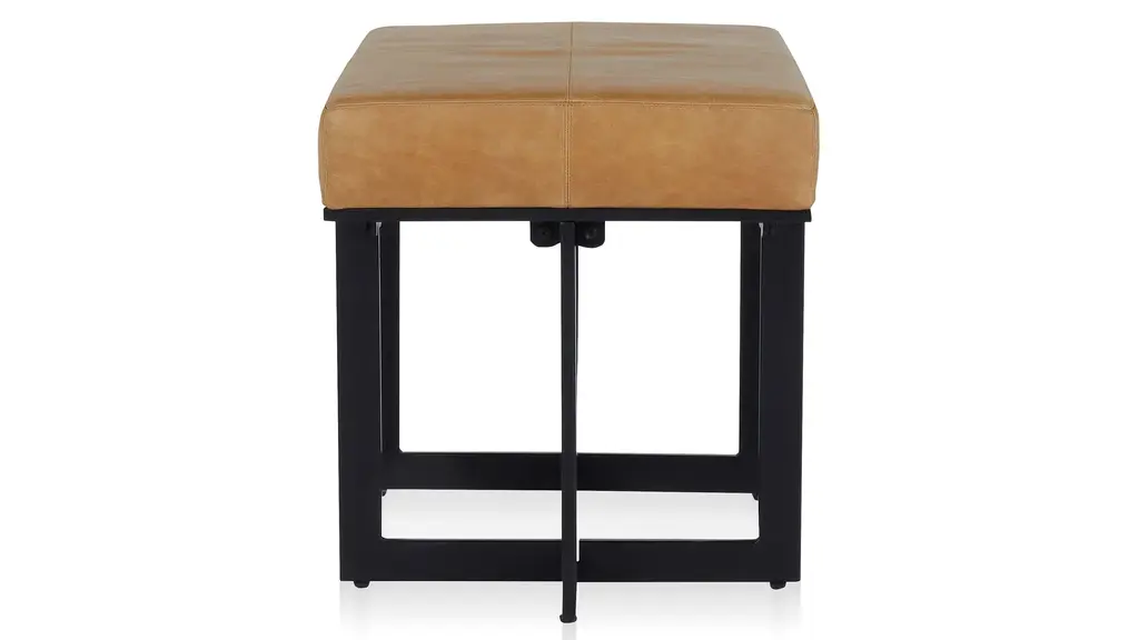 Constructed from premium leather and durable tube iron, this Calvin Stool blends sharp, geometric design with versatile function. Add this piece as an ottoman or extra seating in a living room without sacrificing clean, modern style.