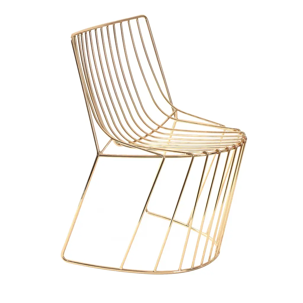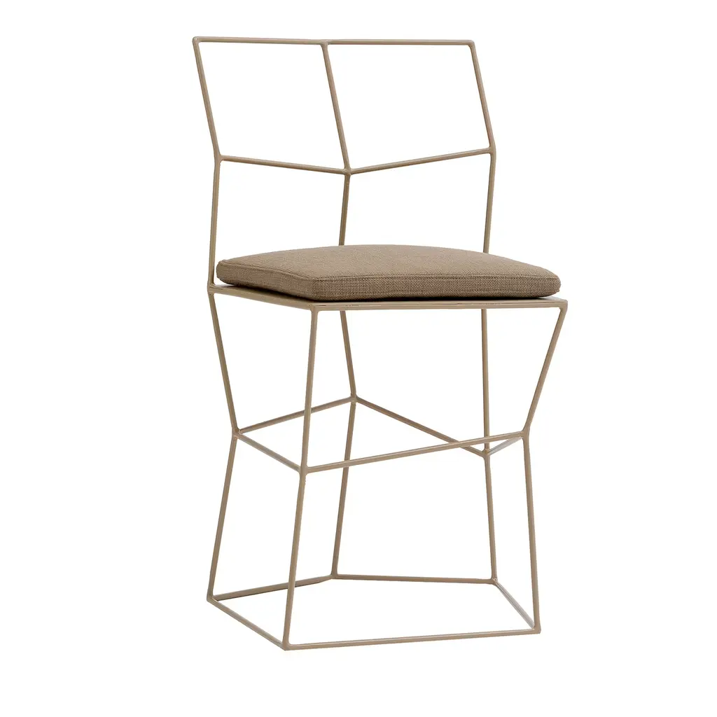 An intriguing distribution of asymmetries between iron wire segments characterizes this stool as a piece of extraordinary sculptural flair. Deftly handmade by master craftsmen, it boasts a refined cappuccino coloring obtained with powder varnish that counterbalances the daring of its dynamic lines. Equipped with a backrest, it is also available in black-cherry or blueberry color variants. Please contact the Concierge for details.