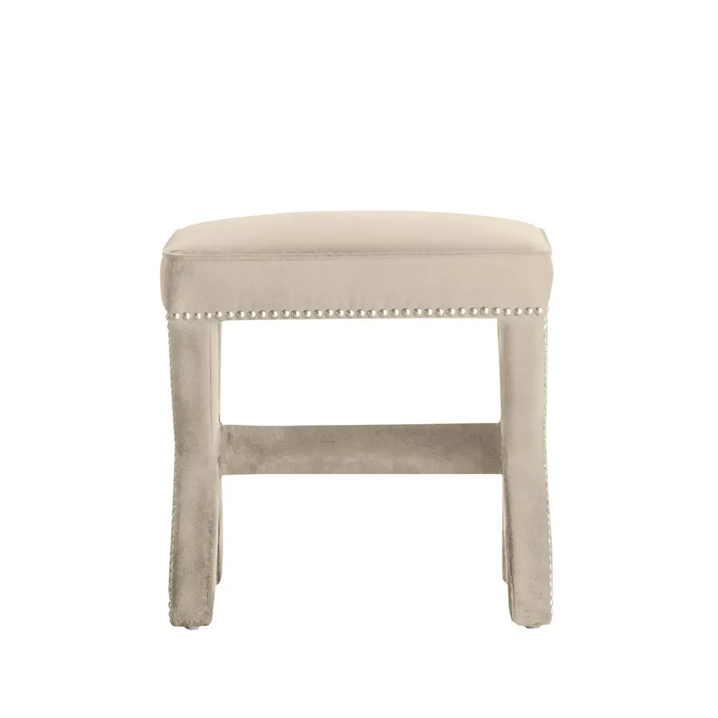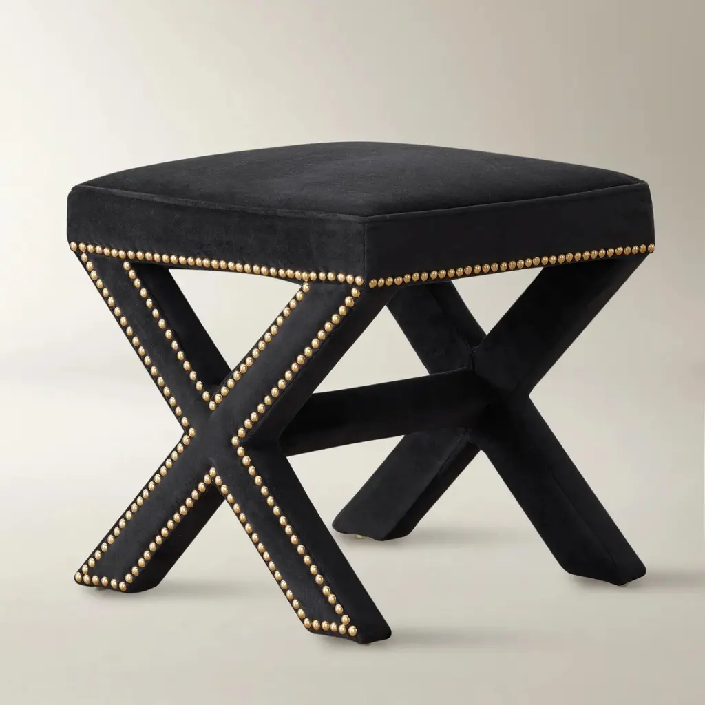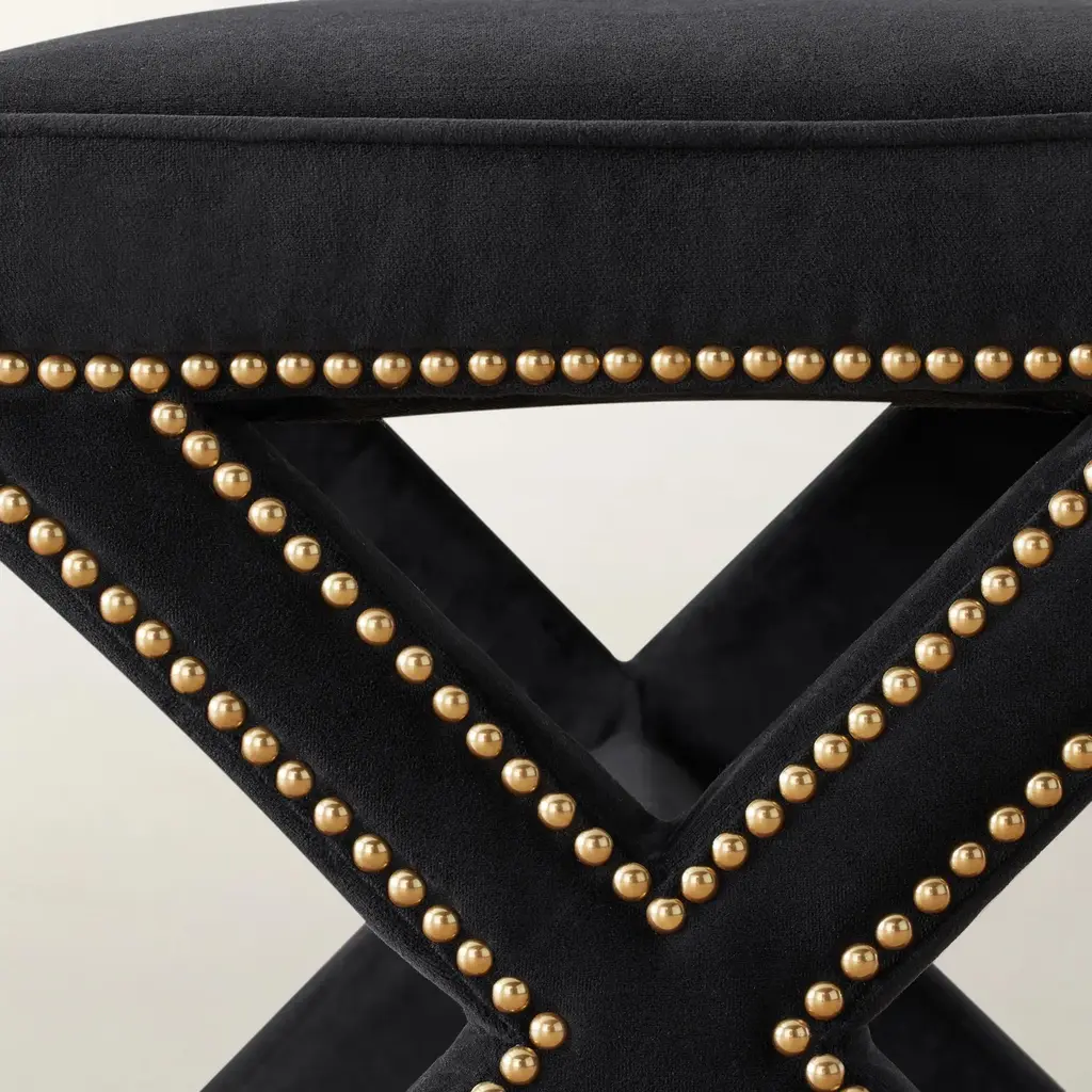 Framed in kiln-dried hardwood, our Carly stool adds a sleek, modern feel to any space with its neatly tailored upholstery and X-base silhouette outlined in gleaming nailhead trim. A foam-and-fiber-filled seat cushion ensures long-lasting comfort. Shown in Bella Velvet Black with golden nailheads.Z Gallerie exclusiveCustomize it! Available in over 15 fabrics.Custom Orders: Custom Furniture is manufactured especially for you, which is why we do not accept cancellations, exchanges, or returns.