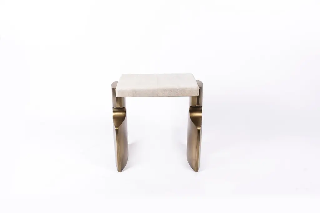 Carmen Stool In Cream Shagreen And Bronze-Patina Brass By R&y Augousti