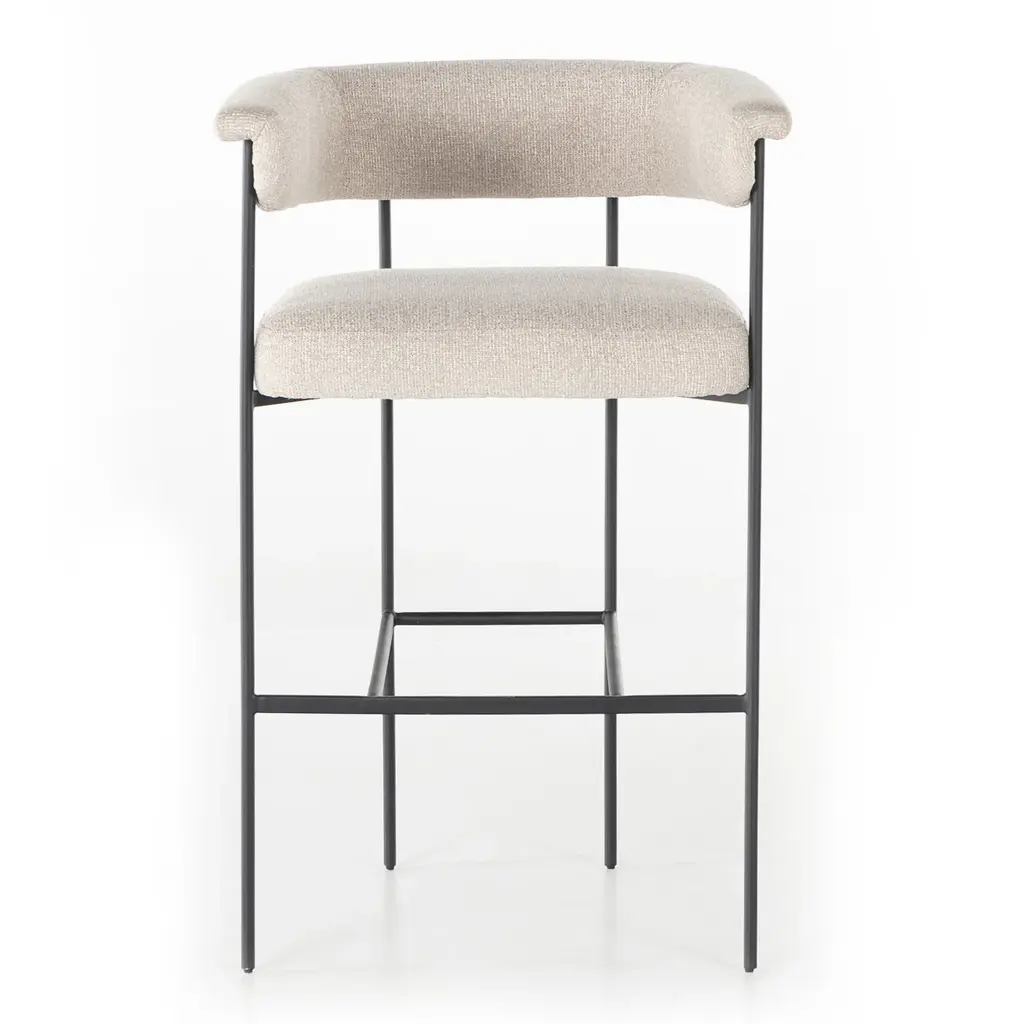 Introduce a touch of elegance and sophistication to your interior design plan with the Carrie Stool from Four Hands. Crafted with an ultra-slender iron framework and adorned with a beautiful polyester backing and upholstered seat, this piece offers a stunning silhouette that will take your space to the next level. Enjoy the delicate intertwining of the legs and the comfort of the upholstery for a luxurious experience. Highlights