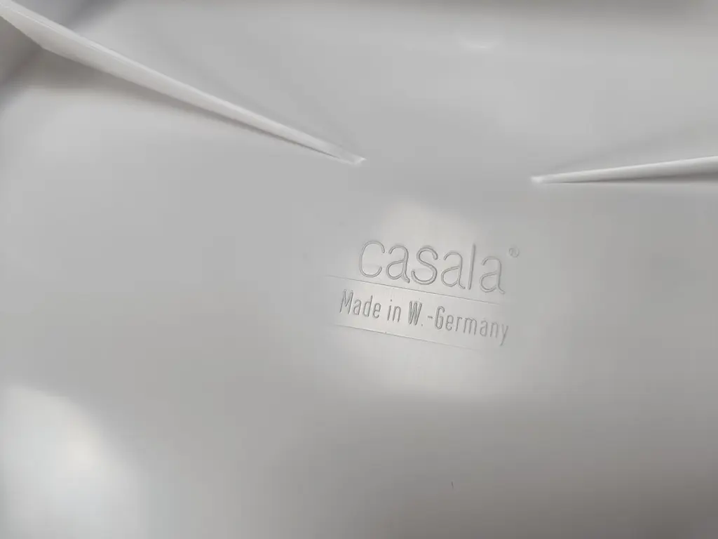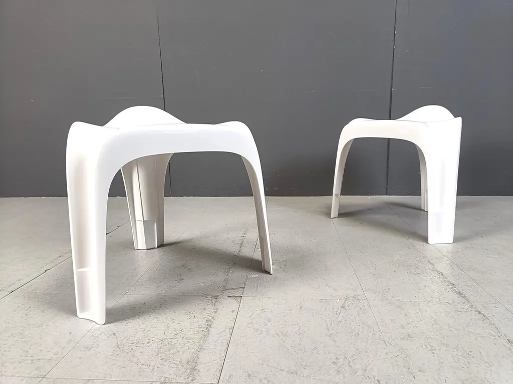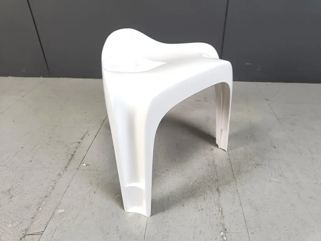 Space age design stackable Casalino stool designed by Alexander Begge for Casala.All the stools are labelled underneath the seat.They have a handy cutout handle.Cool and timeless space age design.We have 20 pieces available.Very good condition1970s - GermanyDimensions: Height: 50cmWidth: 50cmDepth: 40cmSeat height: 44cmprice is per stoolref.: 24110805