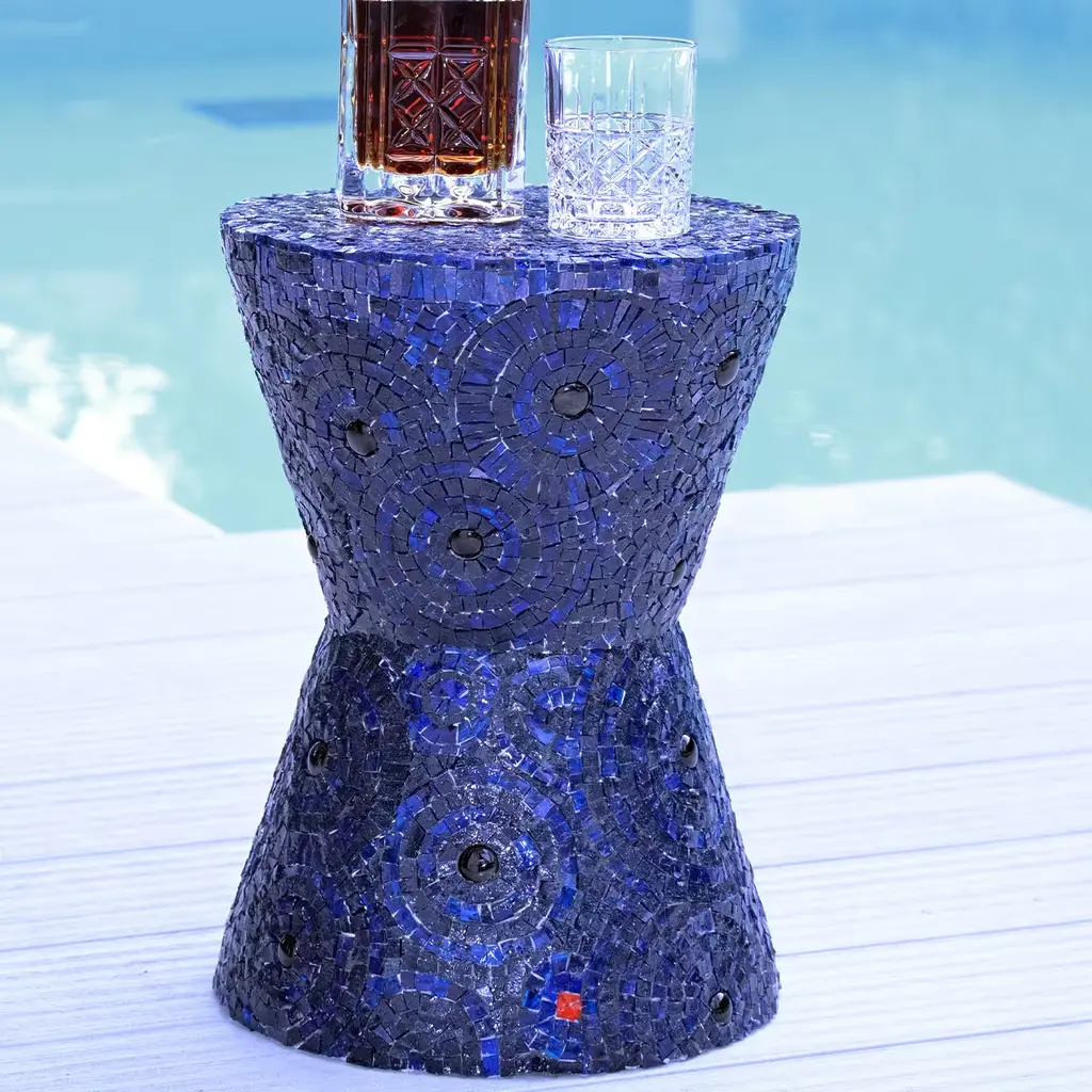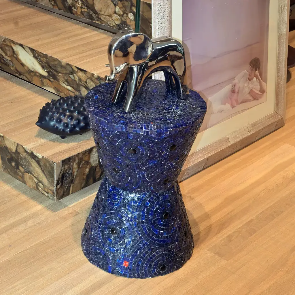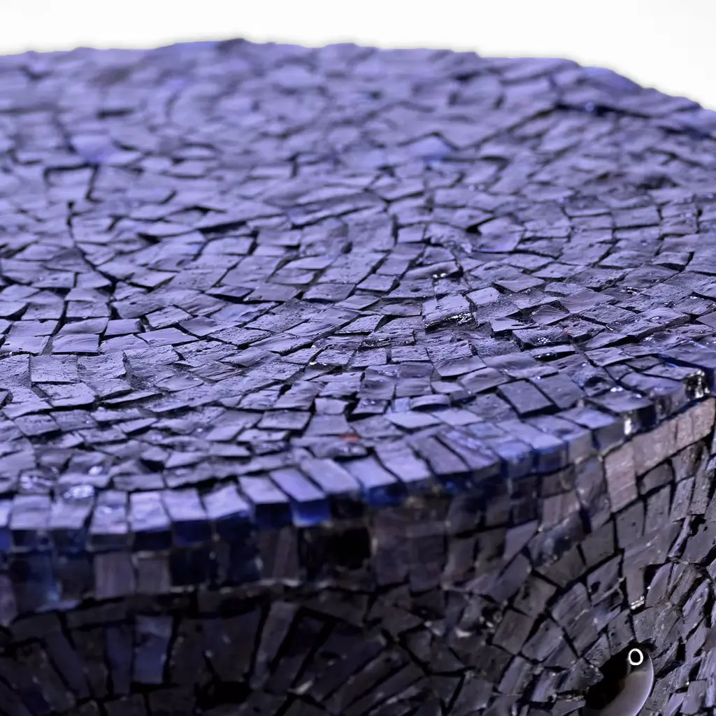 Stunning in its complexity, this magnificent stool will be an iconic statement piece as a side table or as a sculptural decorative object. Singular and exceptionally stylish, it is inspired by Van Gogh's Starry Night in its dark yet shiny hues. Composed of a ceramic base, it is entirely covered with 7000 hand-cut tiles deftly applied by master artisans.