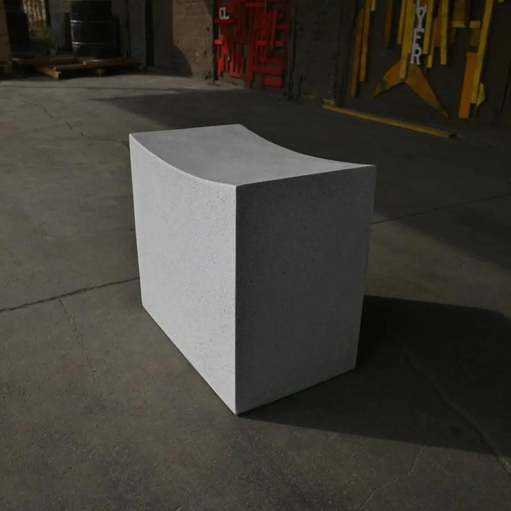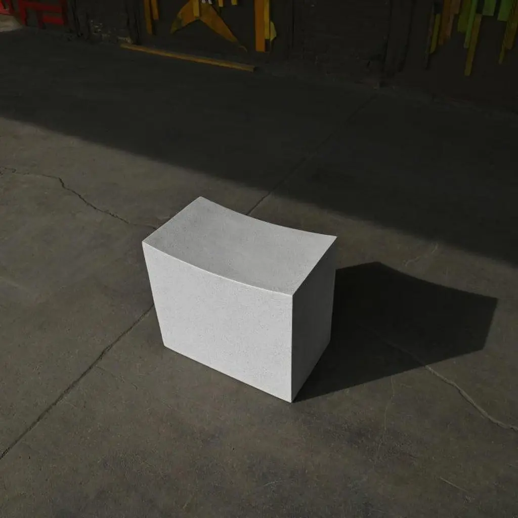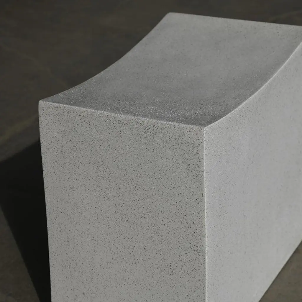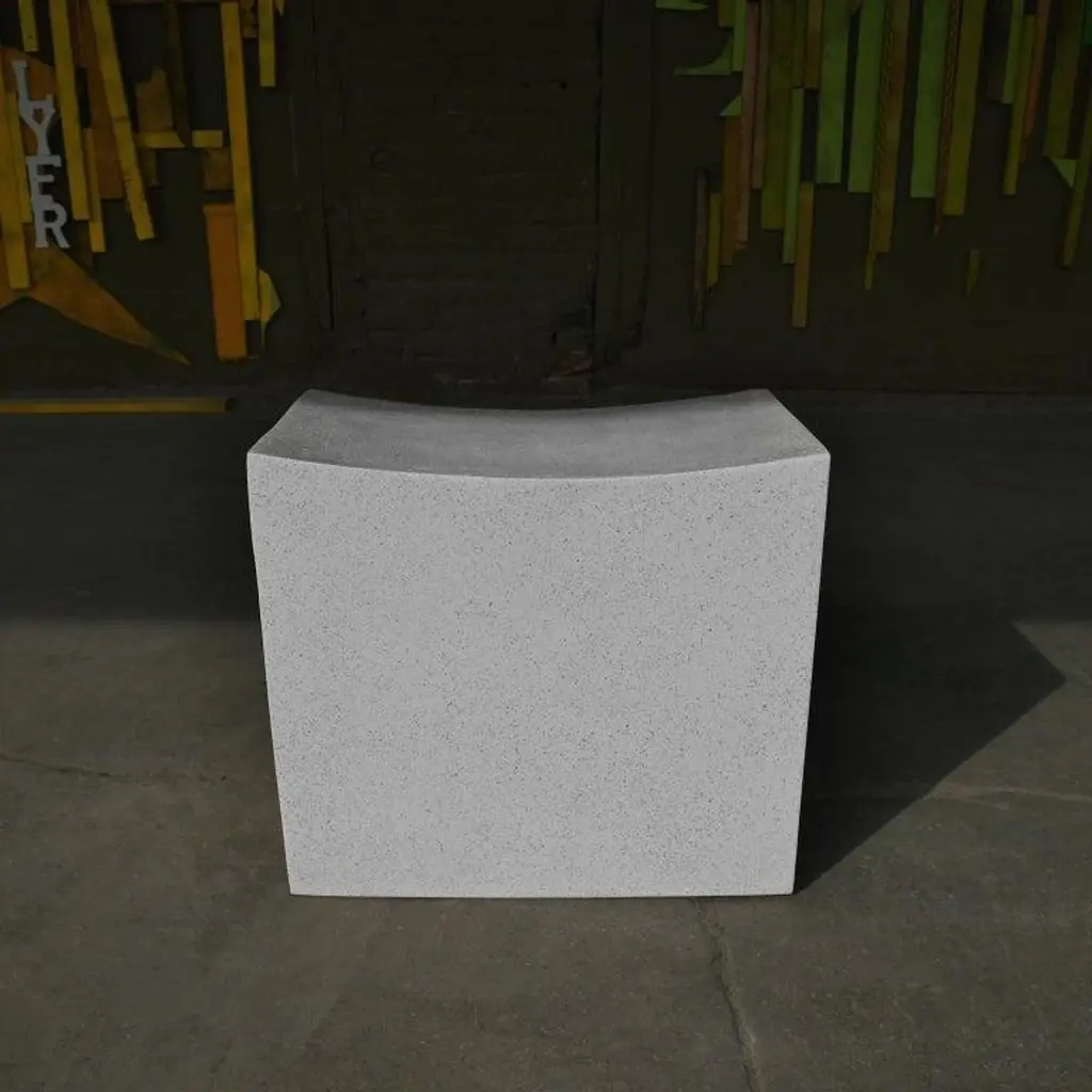 Brutalist sensibility with a soothing, gentle welcome. This supportive block was carved into a gentle arc, stone traversing its crown. Hard-lined geometry buckles and becomes organic, a reminder of the transformative power of the human hand.Dimensions: Width 20 in. (51 cm), depth 12 in. (30 cm), height 18 in. (46 cm). Weight 20 lbs. (9 kg).Materials: Resin, stone aggregate, fiberglass.Durable and designed to be used outdoors in all four seasons and in residential or hospitality environments.Designed by: Zachary BitnerMade to order in Chicago, Illinois.About Zachary A. Design:Founded by Zac Bitner, Zachary A. Design is a furniture brand based in Chicago. The team combines an approachable art sensibility with a deep expertise of the materials. With a focus on the unexpected, they push the boundaries of material finish and refine age-old production techniques to be used in modern, artful furniture designs. Each piece is hand-cast in Chicago. The furniture is designed to be used indoors and outdoors in all seasons.