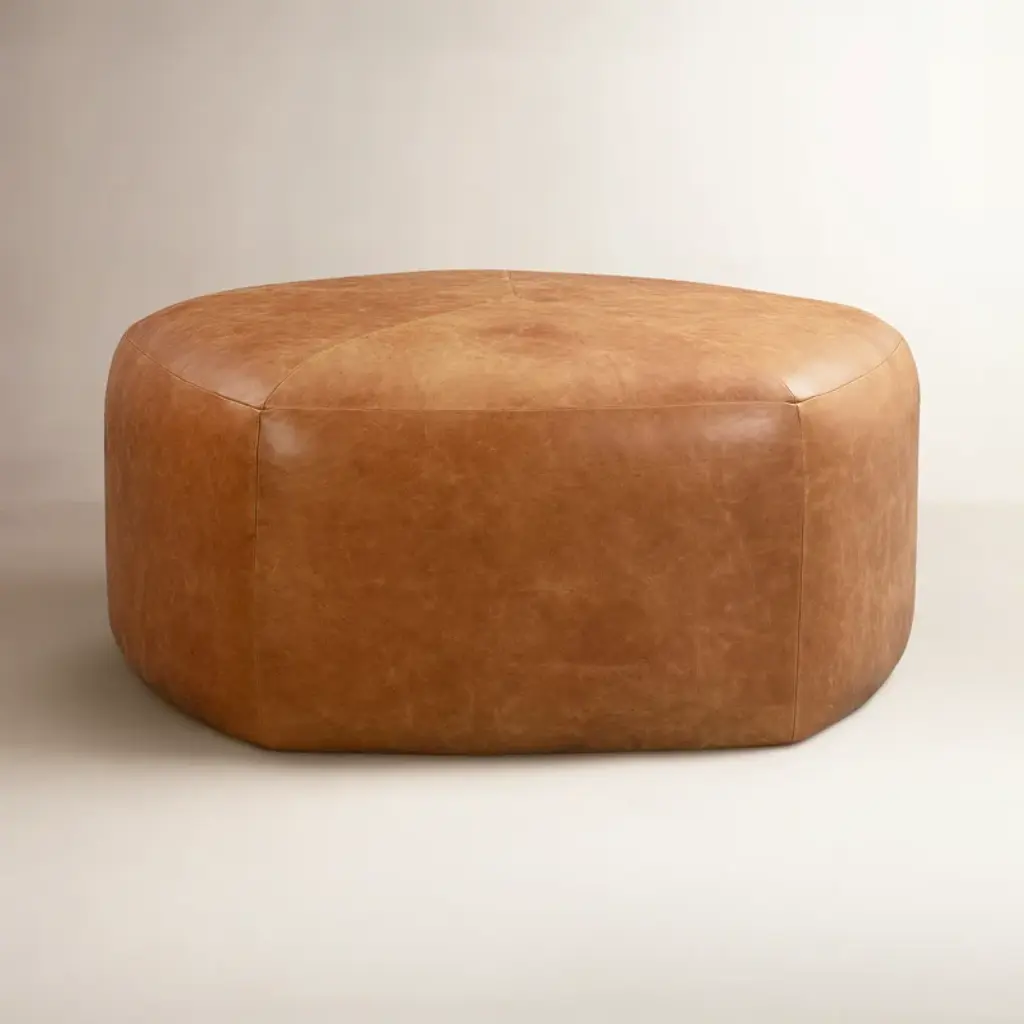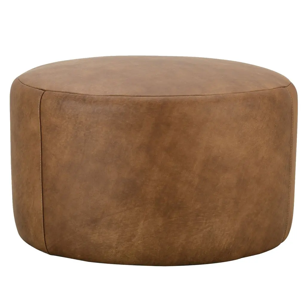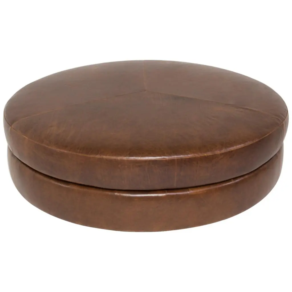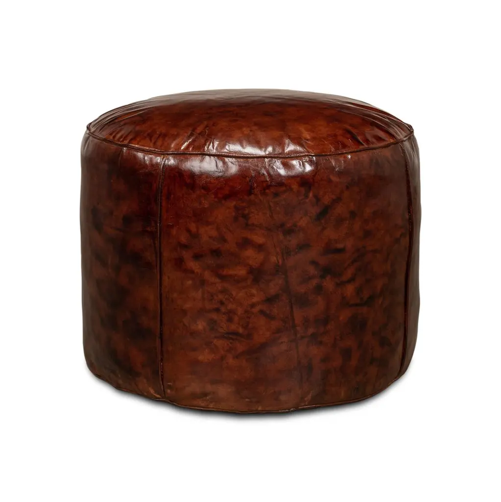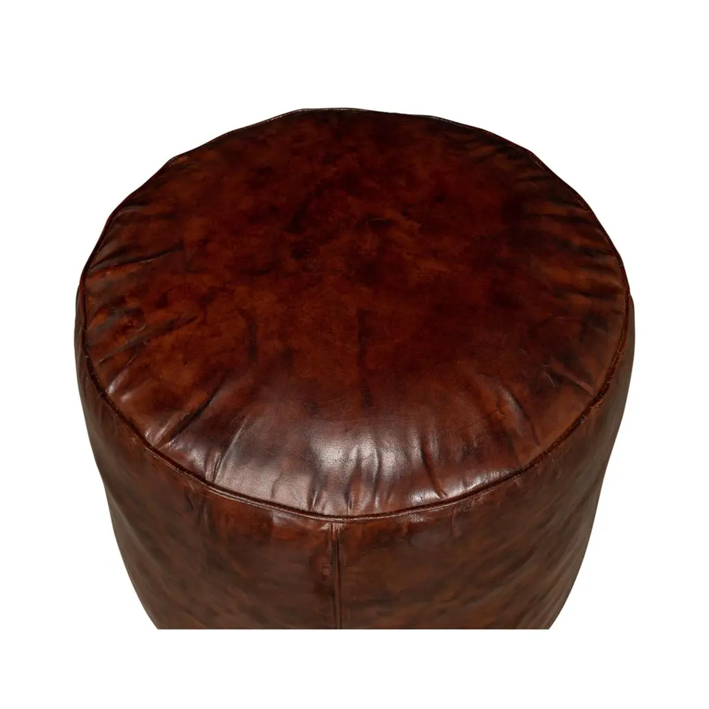 In an antique brown leather, the round stool is an ideal stool to set aside the bed, a chair, or sofa.Dimensions: 22" W x 22" D x 18" H
