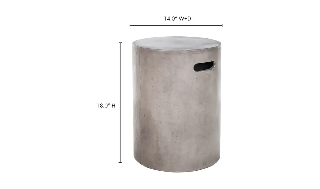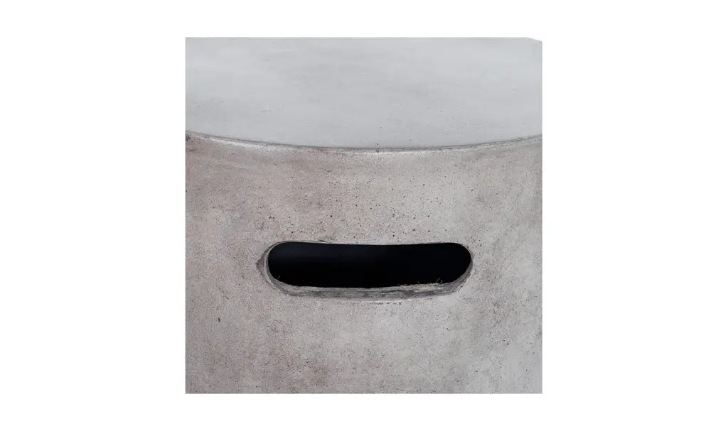 Our outdoor tables are made with a high quality concrete and fiber mix, to give them the cool, modern look you want, but keeping them light and movable. Cato is makes a great little accent stool with side handles for easy moving wherever you need an extra seat. Or put a plant on him, he won't mind.