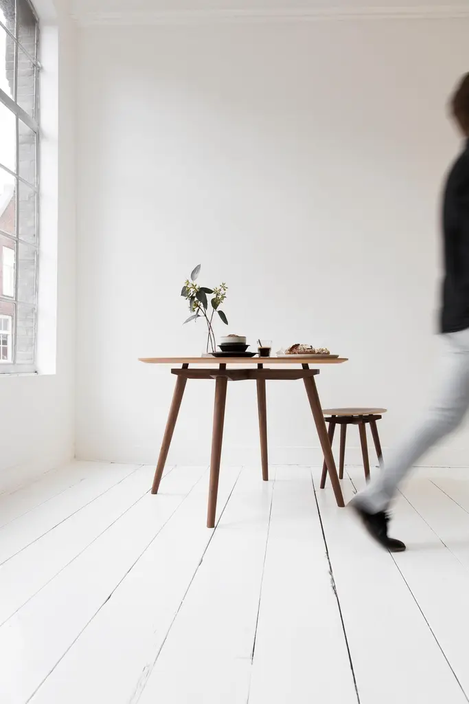 The CC Stool is similar in design and finish to the CC Table and is a perfect match. Ideal for occasional seating, this item is an elaborate take on a wooden stool. With a solid wood frame and a curved seat, the CC Stool possesses a unique character and also works as a stand-alone piece. Designed by Niko Kralj in year 1954.The Cross Connection (CC) family offers a unique view of this often unseen area by separating the legs from the elevated top. Stand-alone pieces to admire and enjoy.With over two million chairs produced, the designs of Niko Kralj (1920-2013) have served numerous generations. After the Second World War, traditional production methods gave way to modern inventions and led to a new era of furniture design. As a trained architect and an absolute pioneer in this field, Niko developed truly innovative pieces for the time and became one of the first ever industrial designers. It’s little wonder that fellow professionals are gradually recognising his work, which has been rewarded with permanent displays in design museums such as the Museum of Modern Art (MoMA) in New York, Designmuseum Denmark and The International Design Museum Munich.1960 Chair in Mid-Century Modern style is now available in natural walnut, natural oak and black oak.