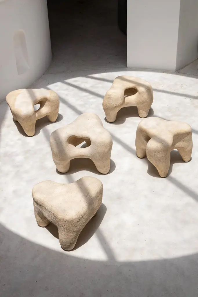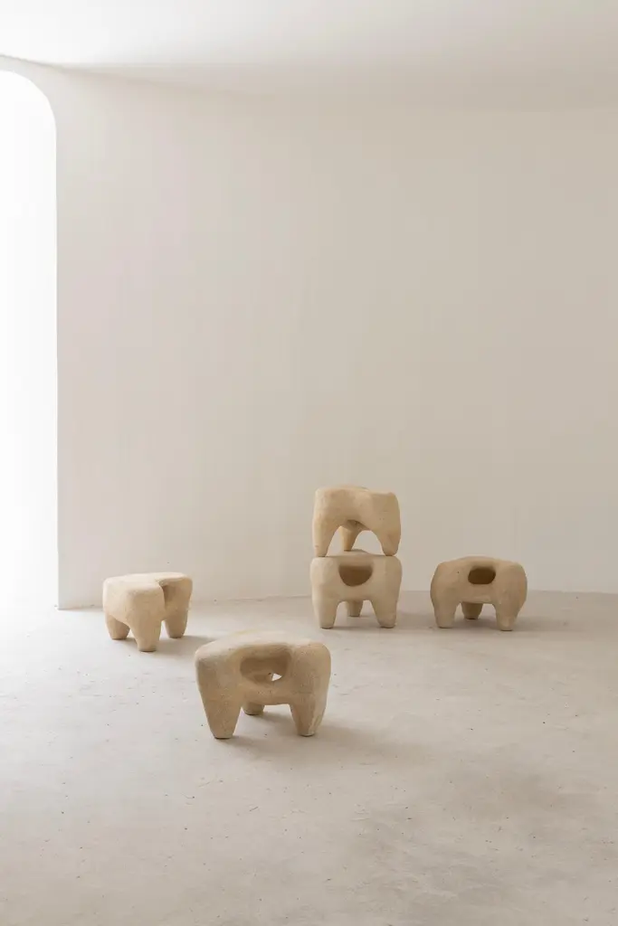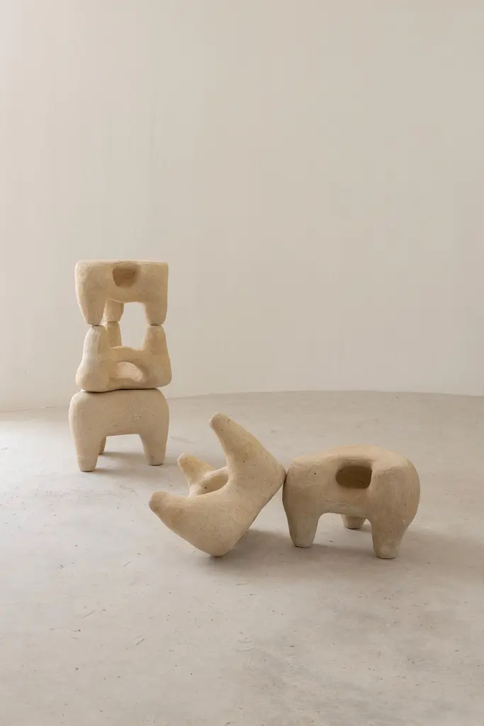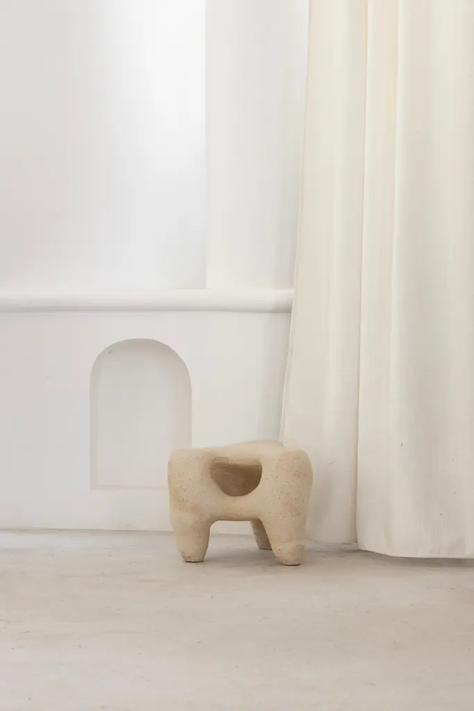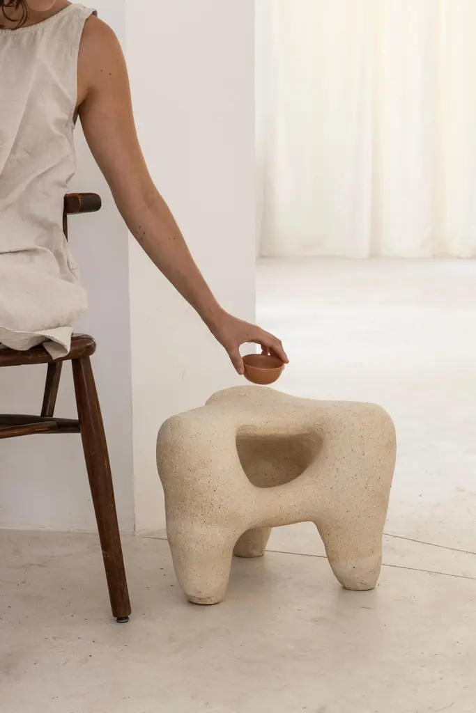Ceramic stool by Camila ApaezUnique piece.Materials: stoneware.Dimensions: D 37 x W 29 x H 30 cm.Ila Ceramica emerged from a process of inner inquiry where ceramics became a space for presence, silence, touch and patience. Camila discovered the shapes that inhabit her in an organic and intuitive manner, leading her to continuous research and development of material, processes, and also herself. What began as a silent personal journey, has turned into a place where poetry, nature and corporeal silhouettes meet as constant themes in Ila´s creative process. The conversations between the pottery wheel and manual construction derive into utilitarian and sculptural pieces, hosted in two main lines of work: “Centrifuga”: functional ware for everyday life, and “Manual”: sculptural pieces that, while still functional, highlight their presence and their own dialogue with space, a constant theme for reflection in Ila. Ila Ceramica is a small studio with 100% handcrafted creative processes; glaze and clay research is slow and thorough, and no casts are used. Although pieces can be made Based Upon previous designs, each piece has its own personality.