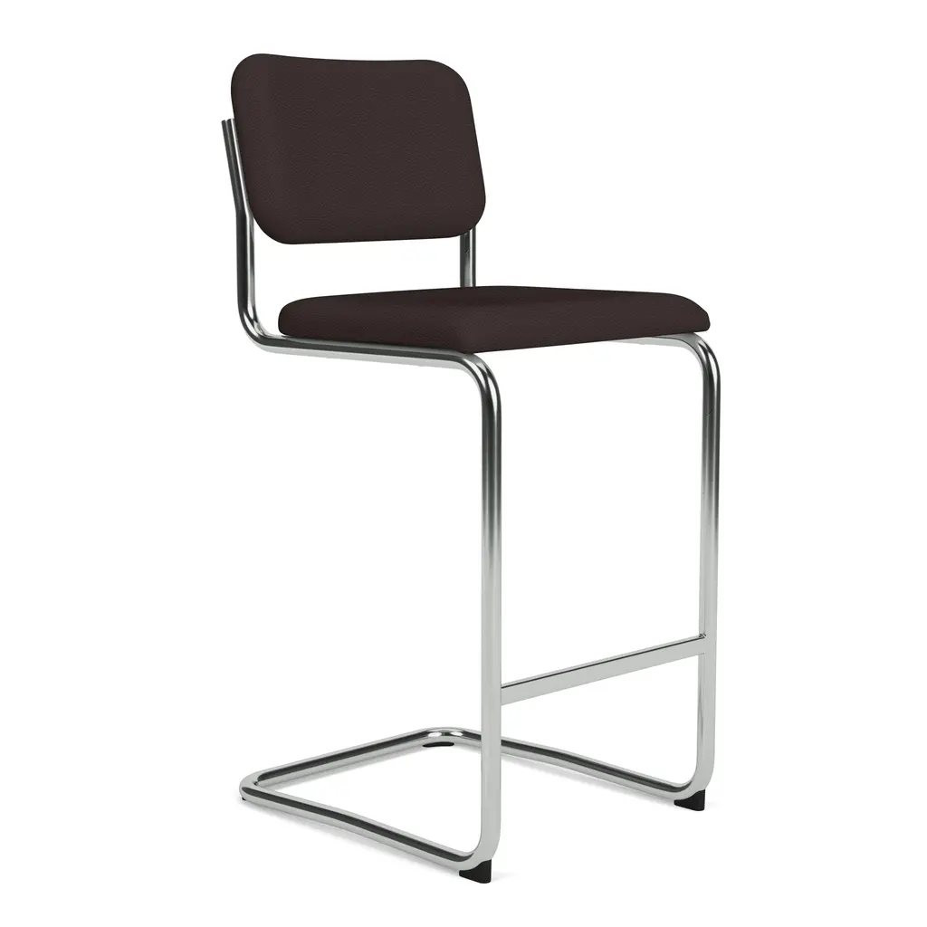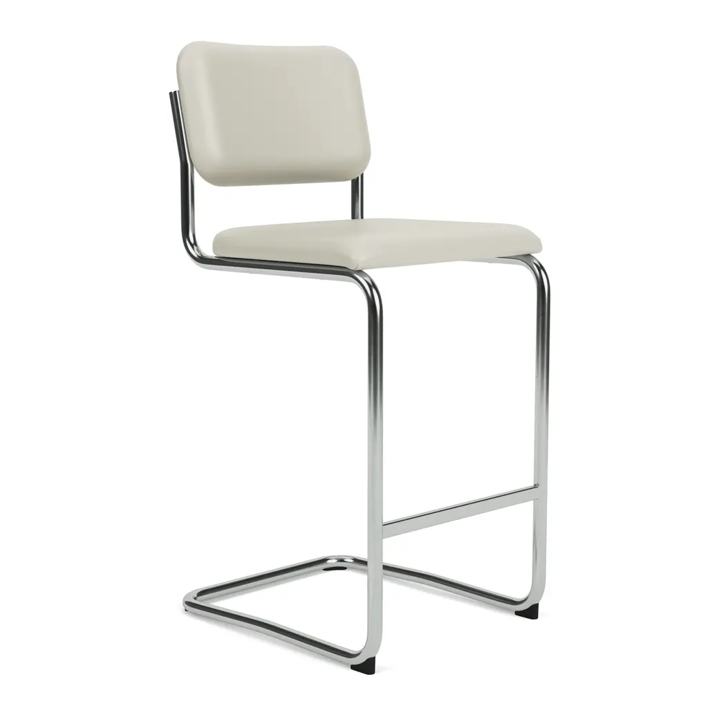Cesca's seat and back are urethane foam over molded plywood. Frame is 1” diameter chrome-plated round steel tube with a polished finish. Plastic glides protect the floor and prevent the stool from tipping forward. The KnollStudio logo and signature of Marcel Breuer are stamped into the base of the chair.Marcel Breuer married traditional craftsmanship with industrial methods and materials to help make tubular steel furniture an international sensation and a modern institution. The cantilevered form exploits the possibilities unique to the material and gives the chair added flexibility and comfort.