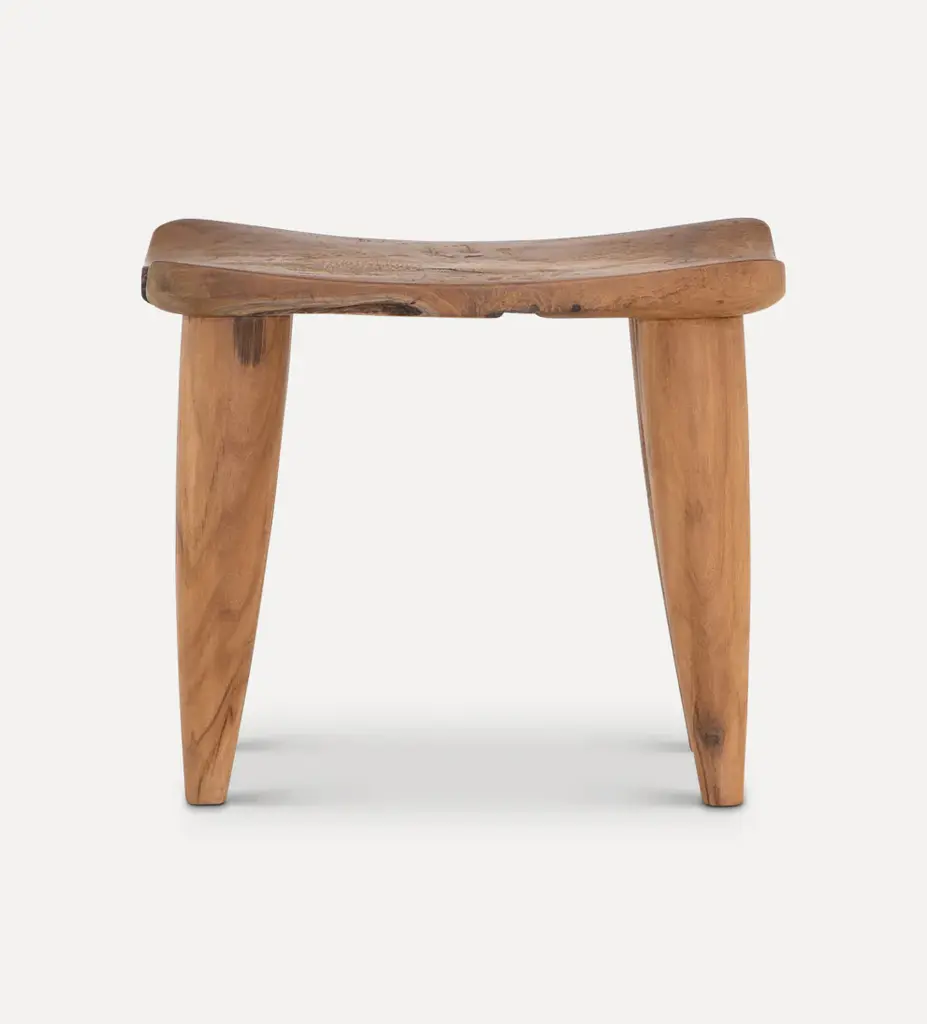 This West African inspired stool features natural teak, graining, and organic knots. Perfect for the indoors or outdoors, the Chadwick stool provides a soft statement that reflects it’s rich roots. Be sure to cover or store inside in case of rugged weather. Crafted from Teak Dimensions: 20" W x 13" D x 17" H Each piece is unique with natural Teak features and organic knot, holes and grain.