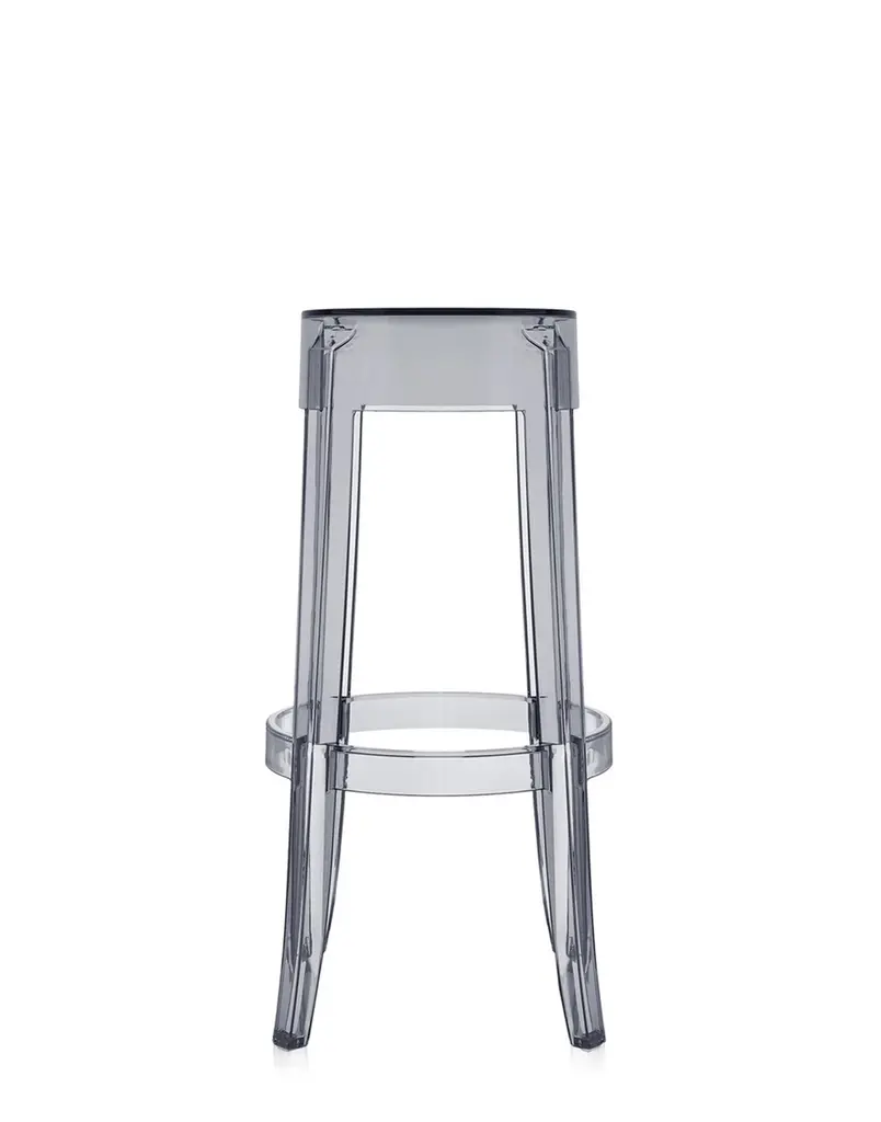 Charles Ghost is the stool that mirrors the shape of traditional 19th century seats. The line of the leg is rounded and slightly curled, an icon of the classic stool. It is available in three different heights: from the stool for occasional, informal seating, to the stool for the kitchen counter or bar. It adapts to both indoor and outdoor settings.