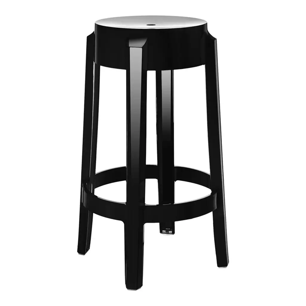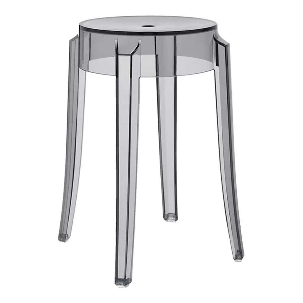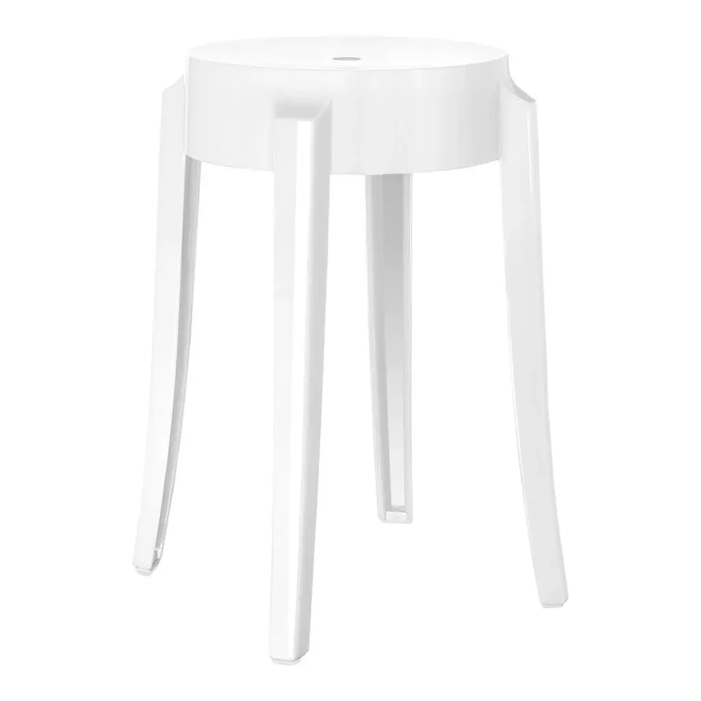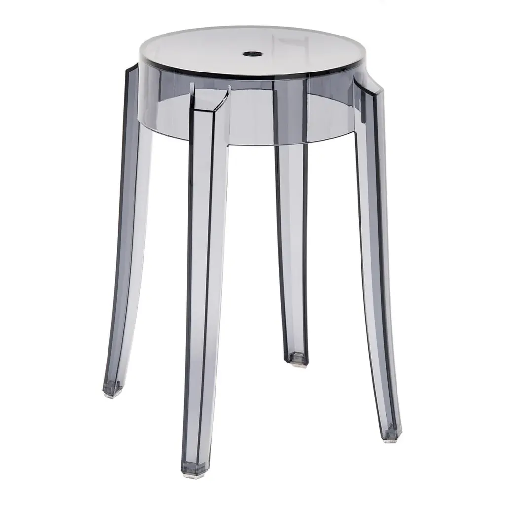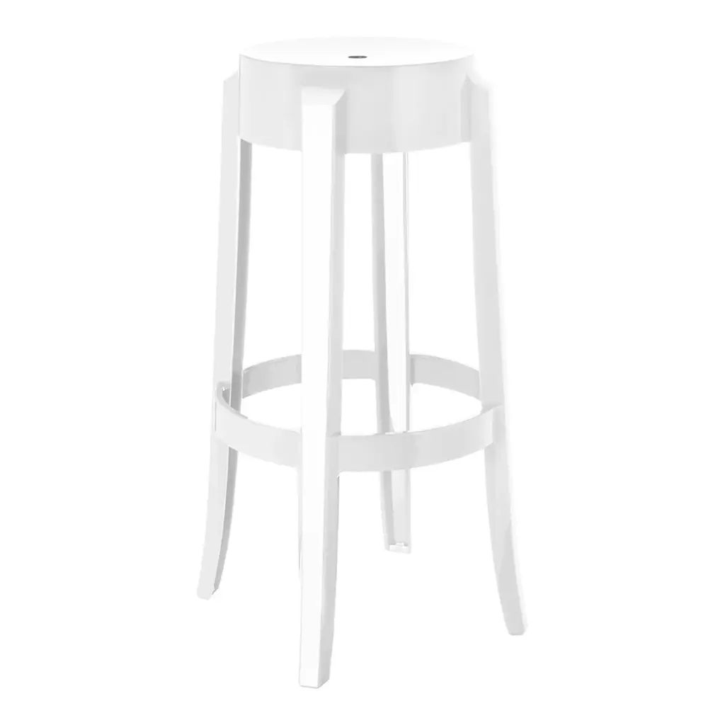 The shape conjures up stools of the 1800s and the line of the legs is rounded and slightly upturned, an icon of the classic high stool. Charles Ghost is constructed from a single block of transparent polycarbonate which makes it indestructible and allows it to survive anywhere. It is available in three different heights: from the stool for occasional and informal use to that for the kitchen bench or bar counter. It is just as suited to closed surroundings as it is to open spaces and it embraces every kind of decor and culture. A wide range of transparent and opaque colours allows for the creation of intriguing chromatic combinations.