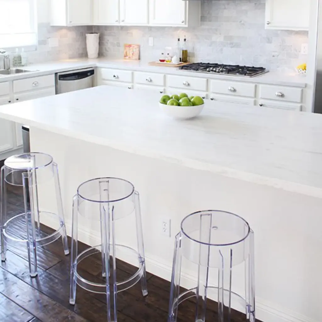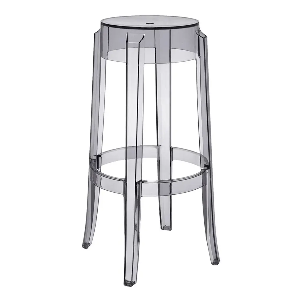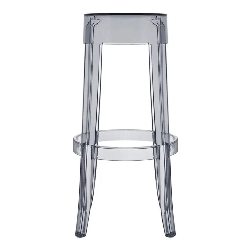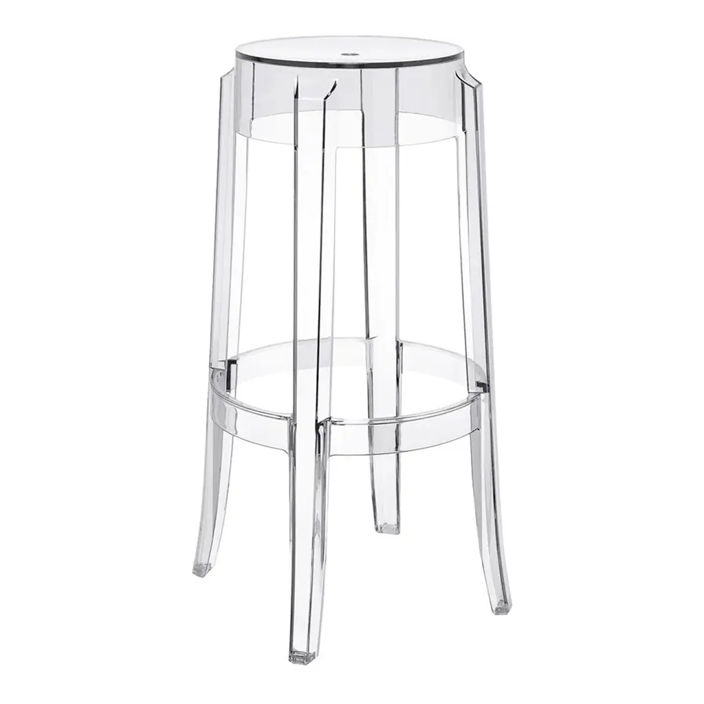 The shape conjures up stools of the 1800s and the line of the legs is rounded and slightly upturned, an icon of the classic high stool. Charles Ghost is constructed from a single block of transparent polycarbonate which makes it indestructible and allows it to survive anywhere. It is available in three different heights: from the stool for occasional and informal use to that for the kitchen bench or bar counter. It is just as suited to closed surroundings as it is to open spaces and it embraces every kind of decor and culture. A wide range of transparent and opaque colours allows for the creation of intriguing chromatic combinations.