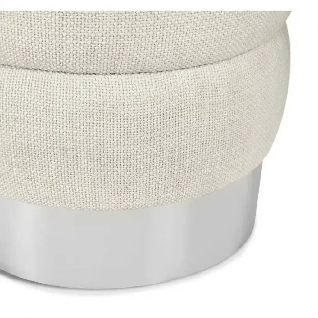 An oyster loomed linen seat tops a metal base in a polished nickel finish to bring fabulous style to the versatile Charlize Stool.
