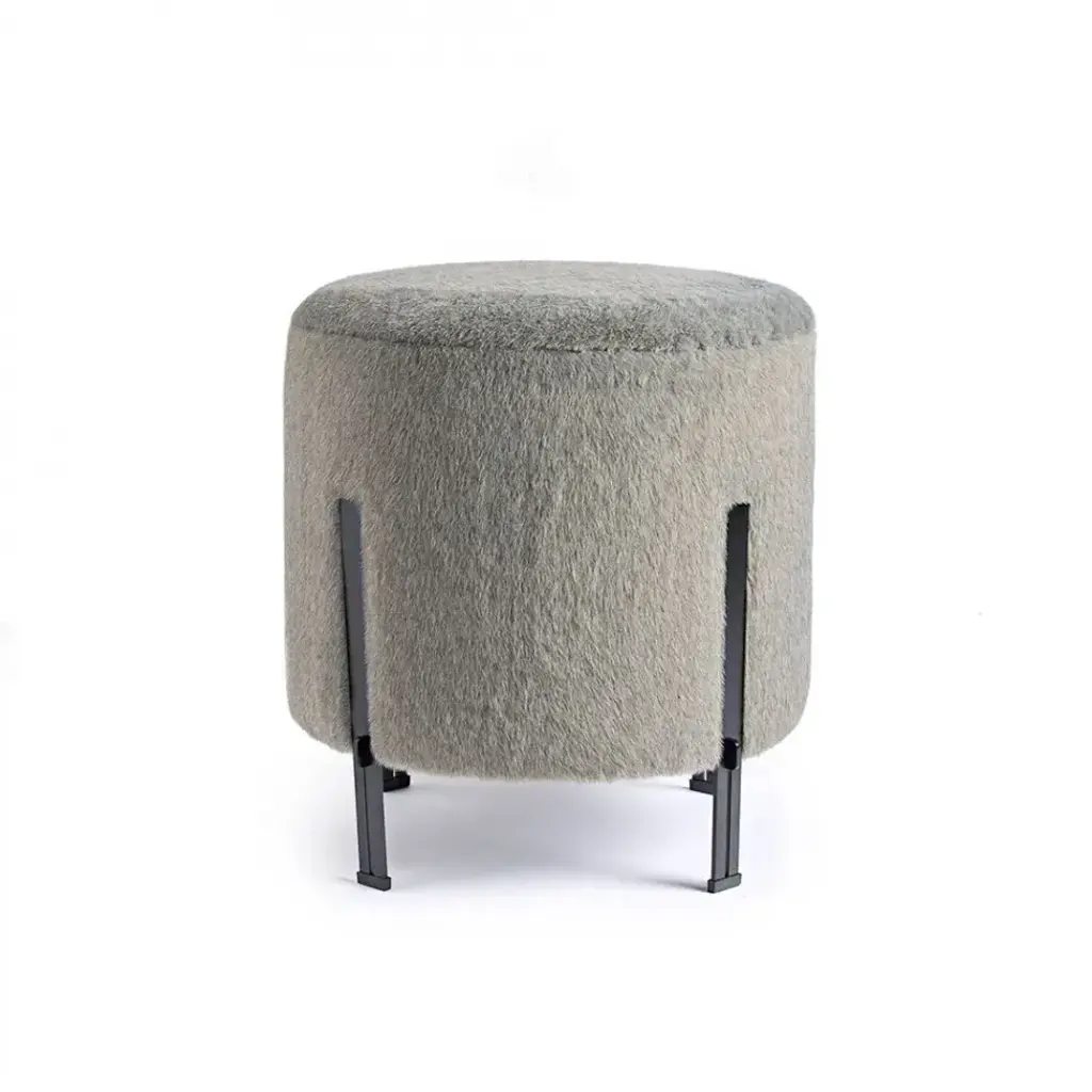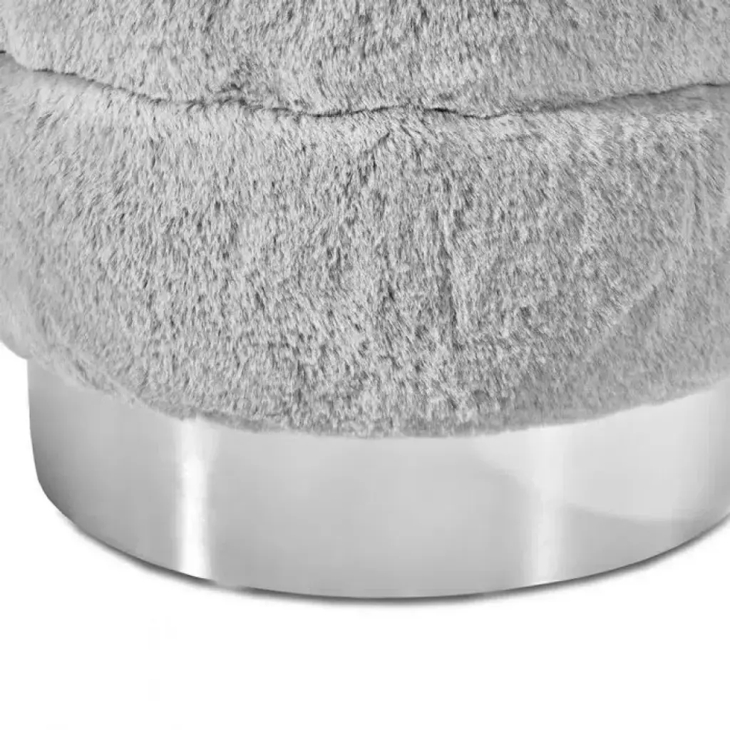 A shadow grey faux fur seat tops a stainless steel base in a polished nickel finish to bring fabulous style to the versatile Charlize Stool.