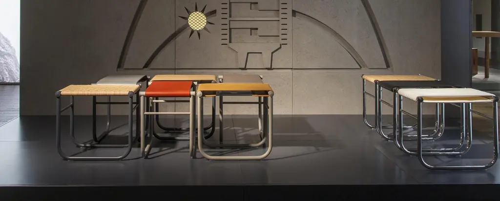 Stool designed by Charlotte Perriand in 1927. Relaunched by Cassina in 1973/2014. Manufactured by Cassina in Italy.Designed by Charlotte Perriand and part of the LC collection by Le Corbusier, Pierre Jeanneret and Charlotte Perriand.A stool with an architectural presence that reflects, to perfection, Charlotte Perriand’s love of poetic harmony. The first version of this stool was for the designer’s own dining room in her Paris apartment, and was made of tubular steel with a rattan seat. In 1929, the design was shown as part of the “Équipement intérieur d’une Habitation” exhibit at the Salon d’Automne in Paris, where it was used in the salle de bain with a terry towelling seat, as appropriate in the space where personal care reigns supreme. The current model is characterised by a trivalent-chrome plated steel frame, with a wide choice of seat materials: from towelling, through saddle leather, to the classic rattan option. Important information regarding images of products:Please note that some of the images show other colors and variations of the model, these images are only to present interior design proposals. The item that is selling is on the first image. Important information regarding color(s) of products:Actual colors may vary. This is due to the fact that every computer monitor, laptop, tablet and phone screen has a different capability to display colors and that everyone sees these colors differently. We try to edit our photos to show all of our products as life-like as possible, but please understand the actual color may vary slightly from your monitorAbout the designer:Charlotte Perriand full membership of that avant-garde cultural movement which, from the first decades of the twentieth century, brought about a profound change in aesthetic values and gave birth to a truly modern sensitivity towards everyday life. In this context, her specific contribution focuses on interior composition, conceived as creating a new way of living, still today at the heart of contemporary lifestyle.In the sphere of twentieth century furnishing history, the advent of modernity made possible the entrepreneurial audacity of this true reformer of interior design. At the beginning of her professional career she was acclaimed by critics for her Bar under the roof, exhibited at the Salon d’Automne in 1927 and constructed entirely in nickel-plated copper and anodized aluminium. In the same year, when she was just twenty-four years old, she began a decade-long collaboration with Le Corbusier and Pierre Jeanneret, at the famous design studios at 35, rue de Sèvres in Paris.Her presence in the Le Corbusier studio is visible in all the furnishings designed with him and with Pierre Jeanneret: and so Charlotte Perriand becomes a cornerstone in the reformation project promoted by the architect, adding a distinct dimension of humaneness to the often cold rationalism of Le Corbusier. In her creations she manages to animate the fundamental substance of daily life with new aesthetic values: in particular her talent and intuition in the discovery and use of new materials manifest themselves to their full extent.The ten-year long collaboration with Le Corbusier and Pierre Jeanneret, and her Japanese experience, represent periods of intense creative effervescence in the life of the artist. During her long stay in the Far East (‘40-‘46), she reveals her artistic talent to the full, through a reinterpretation of the reality of life to echo both tradition and modernity. By way of example, worthy of mention are the furnishings produced using traditional bamboo processing techniques, capable of enhancing the new forms already experimented using steel-tubing.After her work as a professional, she concentrates on a series of original and balanced productions, commissioned by top-level authorities and leading companies of the calibre of Air France, and by a number of foreign organizations, authenticating the fame she had by now gained on the international scene.About the manufacturer:In a continuing dialogue between past, present, and future, Cassina has created the I Maestri collection, revisiting furnishing designs by the twentieth century’s best-known architects, including Le Corbusier, Pierre Jeanneret, Charlotte Perriand, Charles Rennie Mackintosh, Gerrit Thomas Rietveld, Franco Albini, Frank Lloyd Wright and Marco Zanuso. While the designs and functional concepts have been precisely preserved, the models have been manufactured using evolved technology. This is also the company that has manufactured iconic pieces of contemporary design from the 50’s to the present day, ideated by some of the most important international designers. Today Cassina continues to look to the future of design with audacious, passionate curiosity and an open, holistic approach. It affirms its exclusive ability to furnish a home’s living and dining spaces completely and iconically with The Cassina Perspective: a concept, a philosophy, an informed, futuristic thought. A detailed, expansive horizon of combinations; when placed together, the products have an innovative soul and the modern icons create authentic, welcoming, personal atmospheres involved in a conversation dominated by a code of design excellence, formal sensitive awareness, solidity and cultural authority.