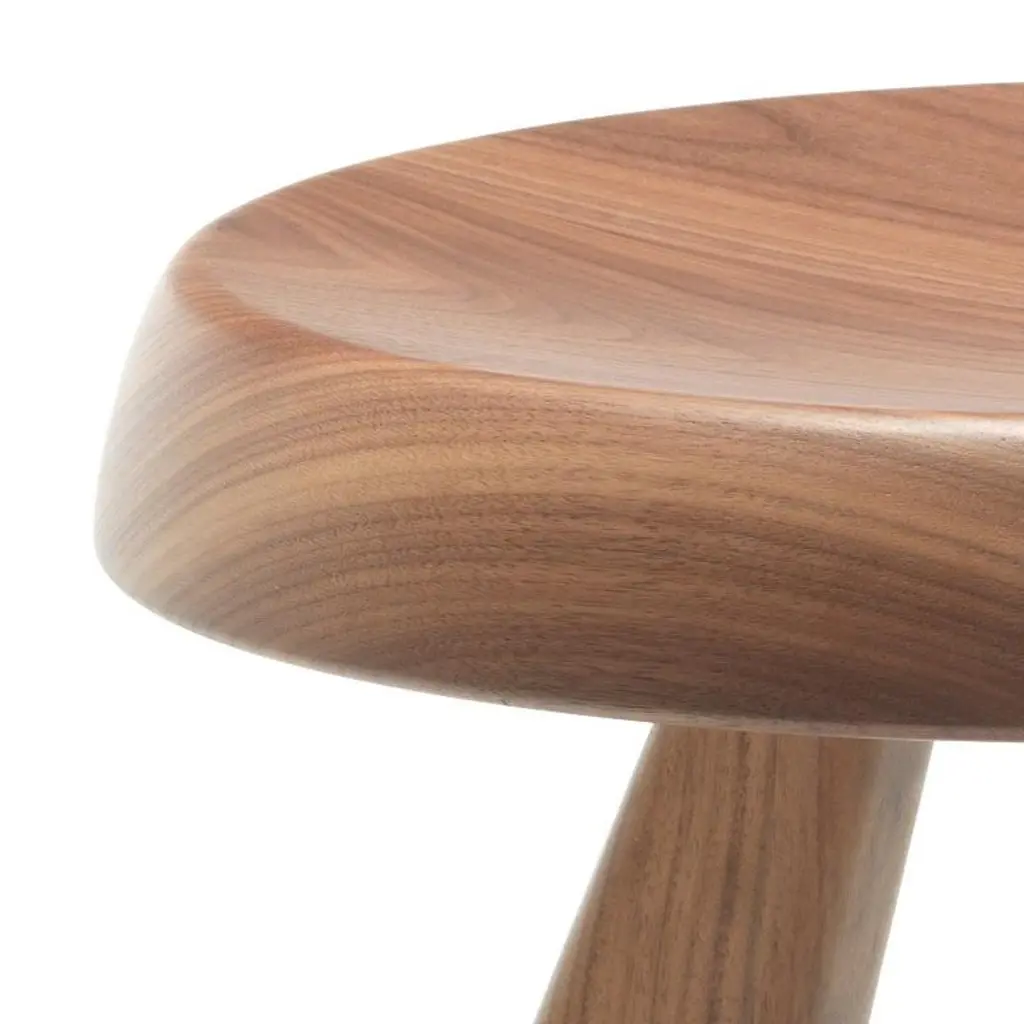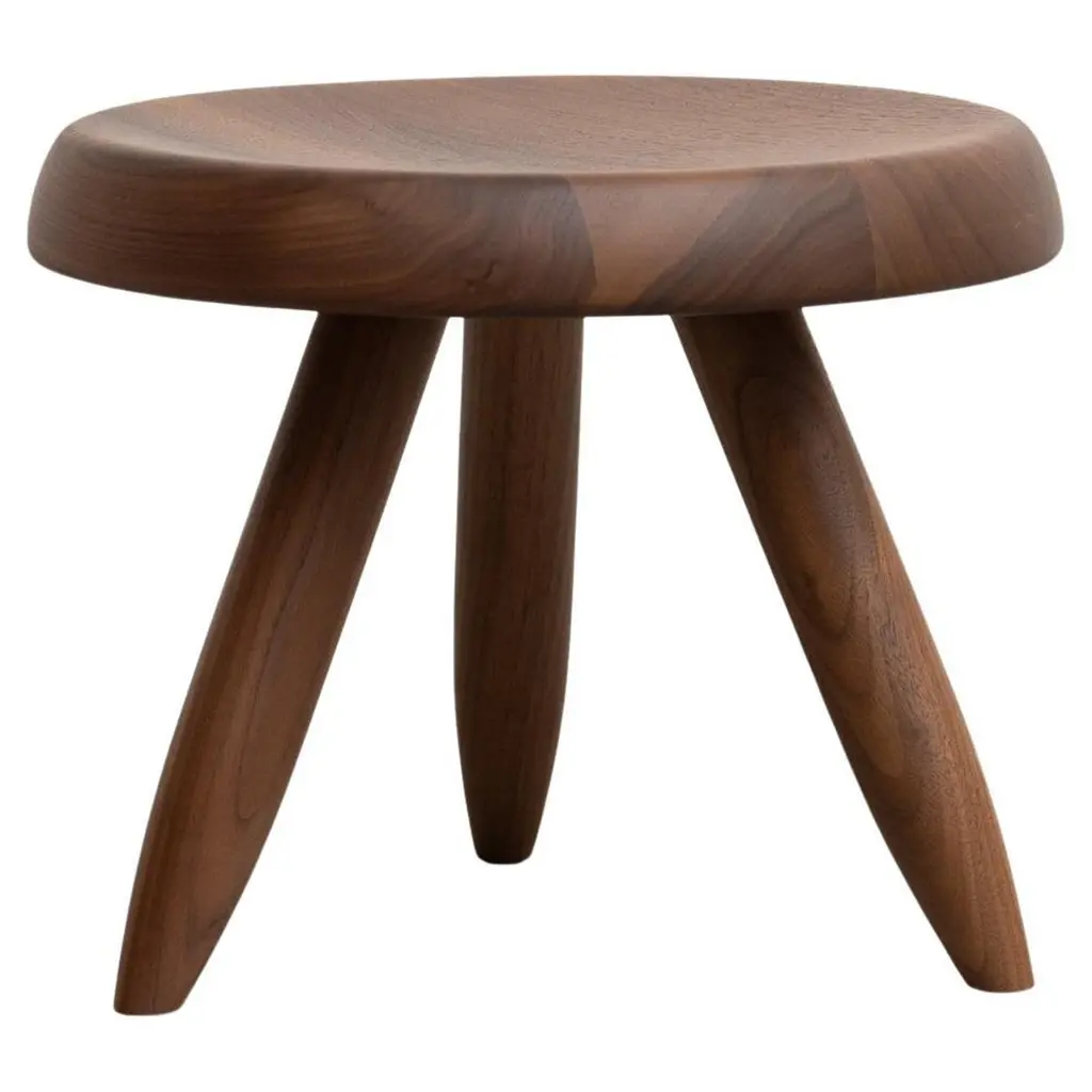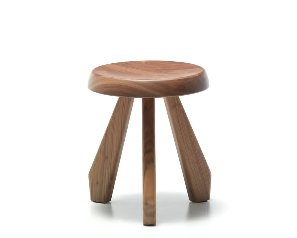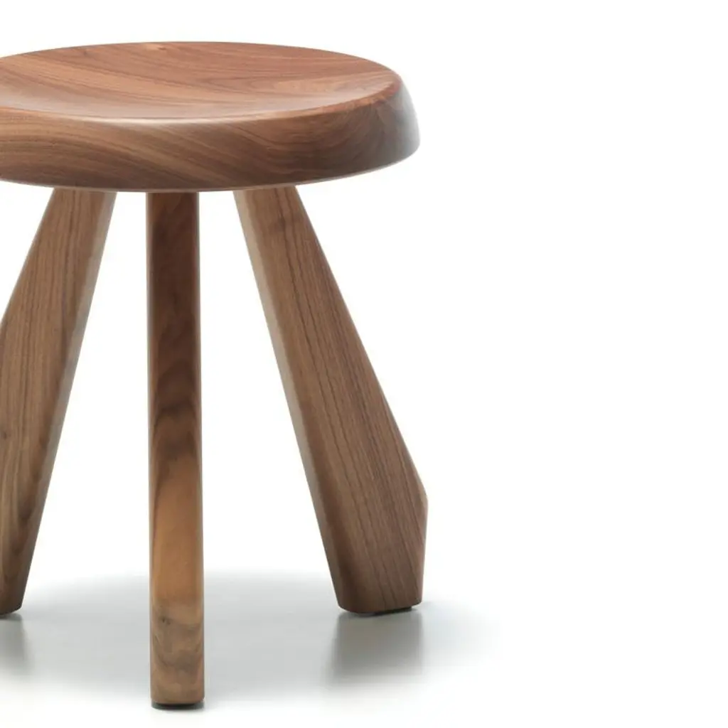 Stool model Meribel designed by Charlotte Perriand in 1953-61. American walnut.Relaunched by Cassina in 2011.Manufactured by Cassina in Italy.Reclaiming simple materials and basic shapes, with an eye to architecture and mountain life, led to the creation of two historic design low table-stools inspired respectively by the milking stool used by mountain shepherds in the French town much loved by the author. Placed individually or in lively arrangements, the two low tables bring the pleasing lightness of solid wood to indoor settings emphasized by the continuity of the grain between the top and the edges and the countless natural variations in the wood. Each piece is made of unique solid wood, so every piece will be different from one another and not exactly as the one on the photos.Both pieces are inspired by the mountains. While the latter takes its name from the milking-stool used by alpine shepherds, the former is inspired by the French locality much loved by designer and architect Charlotte Perriand. These furnishing accessories stand out for the honesty of their simple shapes and for the concrete expression of their materials and function. The turned seat meets the stylised legs both in the Tabouret Berger, a lower version with three legs in hand- turned solid wood, and in the taller Tabouret Me´ribel, which has three angular legs. Produced by Cassina thanks to a meticulous work of craftsmanship that respects the authenticity of the original design, these small masterpieces can be used on their own or in creative compositions. The use of solid wood communicates a pleasant sense of softness, and we see the continuity of the grain right the way across the seat to the borders, nature creating a unique pattern on each. Important information regarding images of products:Please note that some of the images show other colors and variations of the model, these images are only to present interior design proposals. The item that is selling is on the first image. Important information regarding color(s) of products:Actual colors may vary. This is due to the fact that every computer monitor, laptop, tablet and phone screen has a different capability to display colors and that everyone sees these colors differently. We try to edit our photos to show all of our products as life-like as possible, but please understand the actual color may vary slightly from your monitorAbout the designer:Charlotte Perriand full membership of that avant-garde cultural movement which, from the first decades of the 20th century, brought about a profound change in aesthetic values and gave birth to a truly modern sensitivity towards everyday life. In this context, her specific contribution focuses on interior composition, conceived as creating a new way of living, still today at the heart of contemporary lifestyle.In the sphere of 20th century furnishing history, the advent of modernity made possible the entrepreneurial audacity of this true reformer of interior design. At the beginning of her professional career she was acclaimed by critics for her Bar under the roof, exhibited at the Salon d’Automne in 1927 and constructed entirely in nickel-plated copper and anodized aluminium. In the same year, when she was just twenty-four years old, she began a decade-long collaboration with Le Corbusier and Pierre Jeanneret, at the famous design studios at 35, rue de Sèvres in Paris.Her presence in the Le Corbusier studio is visible in all the furnishings designed with him and with Pierre Jeanneret: and so Charlotte Perriand becomes a cornerstone in the reformation project promoted by the architect, adding a distinct dimension of humaneness to the often cold rationalism of Le Corbusier. In her creations she manages to animate the fundamental substance of daily life with new aesthetic values: in particular her talent and intuition in the discovery and use of new materials manifest themselves to their full extent.The ten-year long collaboration with Le Corbusier and Pierre Jeanneret, and her Japanese experience, represent periods of intense creative effervescence in the life of the artist. During her long stay in the Far East (‘40-‘46), she reveals her artistic talent to the full, through a reinterpretation of the reality of life to echo both tradition and modernity. By way of example, worthy of mention are the furnishings produced using traditional bamboo processing techniques, capable of enhancing the new forms already experimented using steel-tubing.After her work as a professional, she concentrates on a series of original and balanced productions, commissioned by top-level authorities and leading companies of the calibre of Air France, and by a number of foreign organizations, authenticating the fame she had by now gained on the international scene.About the manufacturer:In a continuing dialogue between past, present, and future, Cassina has created the I Maestri collection, revisiting furnishing designs by the twentieth century’s best-known architects, including Le Corbusier, Pierre Jeanneret, Charlotte Perriand, Charles Rennie Mackintosh, Gerrit Thomas Rietveld, Franco Albini, Frank Lloyd Wright and Marco Zanuso. While the designs and functional concepts have been precisely preserved, the models have been manufactured using evolved technology. This is also the company that has manufactured iconic pieces of contemporary design from the 1950s to the present day, ideated by some of the most important international designers. Today Cassina continues to look to the future of design with audacious, passionate curiosity and an open, holistic approach. It affirms its exclusive ability to furnish a home’s living and dining spaces completely and iconically with The Cassina Perspective: a concept, a philosophy, an informed, futuristic thought. A detailed, expansive horizon of combinations; when placed together, the products have an innovative soul and the modern icons create authentic, welcoming, personal atmospheres involv