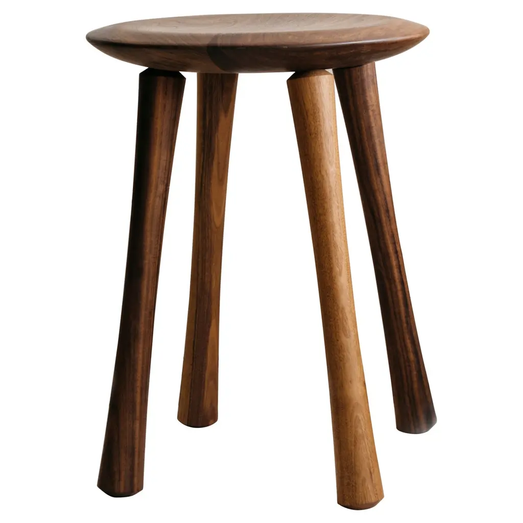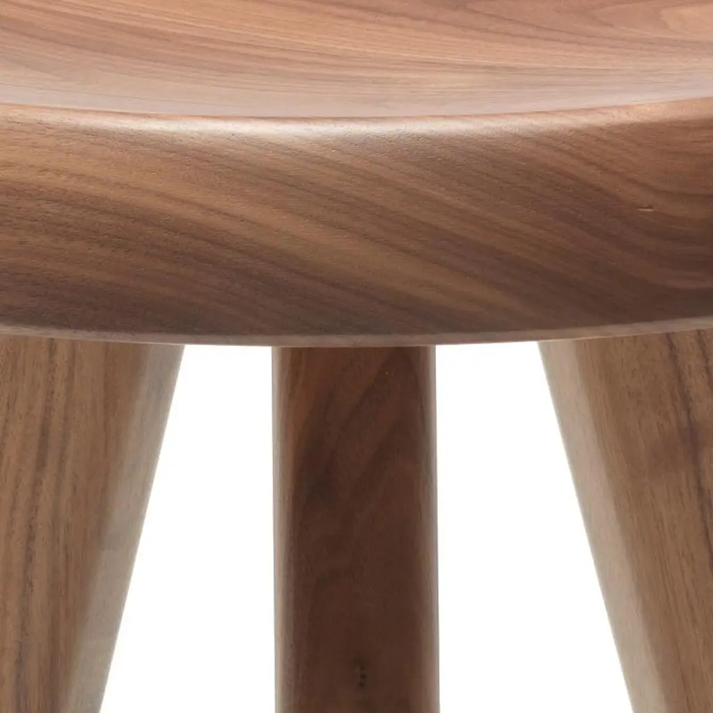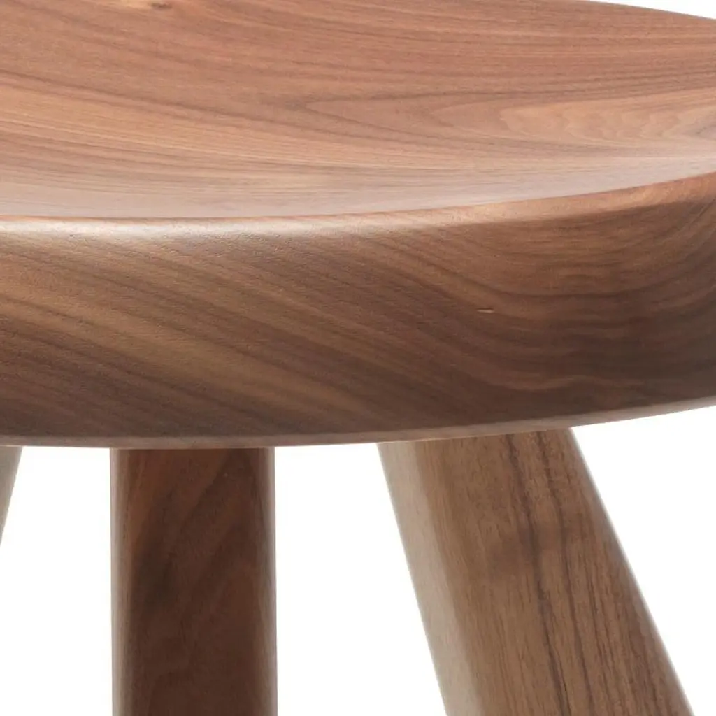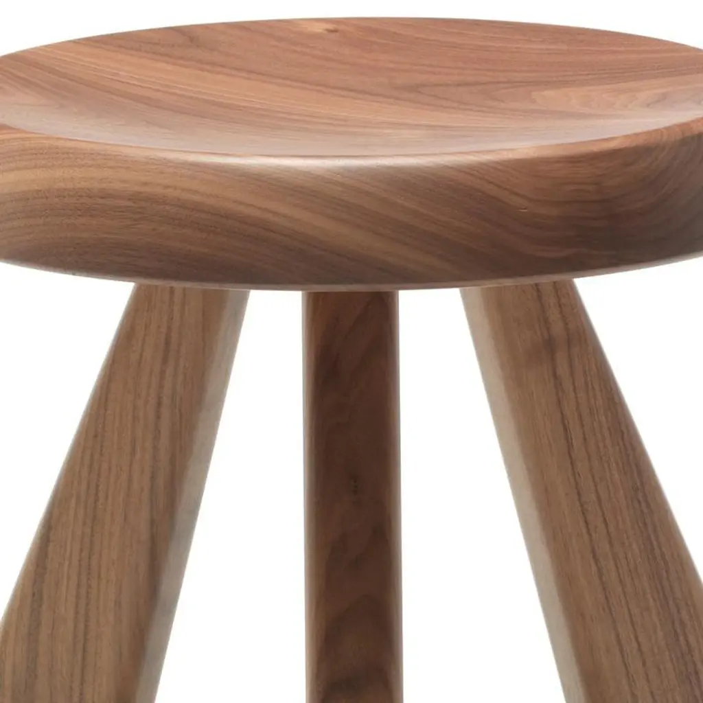 Stool model Meribel designed by Charlotte Perriand in 1953-61. American walnut.Relaunched by Cassina in 2011.Manufactured by Cassina in Italy.Reclaiming simple materials and basic shapes, with an eye to architecture and mountain life, led to the creation of two historic design low table-stools inspired respectively by the milking stool used by mountain shepherds in the French town much loved by the author. Placed individually or in lively arrangements, the two low tables bring the pleasing lightness of solid wood to indoor settings emphasized by the continuity of the grain between the top and the edges and the countless natural variations in the wood. Each piece is made of unique solid wood, so every piece will be different from one another and not exactly as the one on the photos.Both pieces are inspired by the mountains. While the latter takes its name from the milking-stool used by alpine shepherds, the former is inspired by the French locality much loved by designer and architect Charlotte Perriand. These furnishing accessories stand out for the honesty of their simple shapes and for the concrete expression of their materials and function. The turned seat meets the stylised legs both in the Tabouret Berger, a lower version with three legs in hand- turned solid wood, and in the taller Tabouret Me´ribel, which has three angular legs. Produced by Cassina thanks to a meticulous work of craftsmanship that respects the authenticity of the original design, these small masterpieces can be used on their own or in creative compositions. The use of solid wood communicates a pleasant sense of softness, and we see the continuity of the grain right the way across the seat to the borders, nature creating a unique pattern on each. Important information regarding images of products:Please note that some of the images show other colors and variations of the model, these images are only to present interior design proposals. The item that is selling is on the first image. Important information regarding color(s) of products:Actual colors may vary. This is due to the fact that every computer monitor, laptop, tablet and phone screen has a different capability to display colors and that everyone sees these colors differently. We try to edit our photos to show all of our products as life-like as possible, but please understand the actual color may vary slightly from your monitorAbout the designer:Charlotte Perriand full membership of that avant-garde cultural movement which, from the first decades of the 20th century, brought about a profound change in aesthetic values and gave birth to a truly modern sensitivity towards everyday life. In this context, her specific contribution focuses on interior composition, conceived as creating a new way of living, still today at the heart of contemporary lifestyle.In the sphere of 20th century furnishing history, the advent of modernity made possible the entrepreneurial audacity of this true reformer of interior design. At the beginning of her professional career she was acclaimed by critics for her Bar under the roof, exhibited at the Salon d’Automne in 1927 and constructed entirely in nickel-plated copper and anodized aluminium. In the same year, when she was just twenty-four years old, she began a decade-long collaboration with Le Corbusier and Pierre Jeanneret, at the famous design studios at 35, rue de Sèvres in Paris.Her presence in the Le Corbusier studio is visible in all the furnishings designed with him and with Pierre Jeanneret: and so Charlotte Perriand becomes a cornerstone in the reformation project promoted by the architect, adding a distinct dimension of humaneness to the often cold rationalism of Le Corbusier. In her creations she manages to animate the fundamental substance of daily life with new aesthetic values: in particular her talent and intuition in the discovery and use of new materials manifest themselves to their full extent.The ten-year long collaboration with Le Corbusier and Pierre Jeanneret, and her Japanese experience, represent periods of intense creative effervescence in the life of the artist. During her long stay in the Far East (‘40-‘46), she reveals her artistic talent to the full, through a reinterpretation of the reality of life to echo both tradition and modernity. By way of example, worthy of mention are the furnishings produced using traditional bamboo processing techniques, capable of enhancing the new forms already experimented using steel-tubing.After her work as a professional, she concentrates on a series of original and balanced productions, commissioned by top-level authorities and leading companies of the calibre of Air France, and by a number of foreign organizations, authenticating the fame she had by now gained on the international scene.About the manufacturer:In a continuing dialogue between past, present, and future, Cassina has created the I Maestri collection, revisiting furnishing designs by the twentieth century’s best-known architects, including Le Corbusier, Pierre Jeanneret, Charlotte Perriand, Charles Rennie Mackintosh, Gerrit Thomas Rietveld, Franco Albini, Frank Lloyd Wright and Marco Zanuso. While the designs and functional concepts have been precisely preserved, the models have been manufactured using evolved technology. This is also the company that has manufactured iconic pieces of contemporary design from the 1950s to the present day, ideated by some of the most important international designers. Today Cassina continues to look to the future of design with audacious, passionate curiosity and an open, holistic approach. It affirms its exclusive ability to furnish a home’s living and dining spaces completely and iconically with The Cassina Perspective: a concept, a philosophy, an informed, futuristic thought. A detailed, expansive horizon of combinations; when placed together, the products have an innovative soul and the modern icons create authentic, welcoming, personal atmospheres involv
