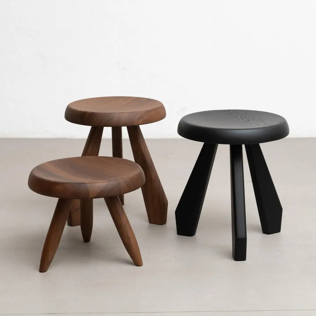 Charlotte Perriand Meribel Set of Three Wood Stool For CassinaStool model Meribel designed by Charlotte Perriand in 1953-61. American walnut.Relaunched by Cassina in 2011.Manufactured by Cassina in Italy.Reclaiming simple materials and basic shapes, with an eye to architecture and mountain life, led to the creation of two historic design low table-stools inspired respectively by the milking stool used by mountain shepherds in the French town much loved by the author. Placed individually or in lively arrangements, the two low tables bring the pleasing lightness of solid wood to indoor settings emphasized by the continuity of the grain between the top and the edges and the countless natural variations in the wood. Each piece is made of unique solid wood, so every piece will be different from one another and not exactly as the one on the photos.Both pieces are inspired by the mountains. While the latter takes its name from the milking-stool used by alpine shepherds, the former is inspired by the French locality much loved by designer and architect Charlotte Perriand. These furnishing accessories stand out for the honesty of their simple shapes and for the concrete expression of their materials and function. The turned seat meets the stylised legs both in the Tabouret Berger, a lower version with three legs in hand- turned solid wood, and in the taller Tabouret Me´ribel, which has three angular legs. Produced by Cassina thanks to a meticulous work of craftsmanship that respects the authenticity of the original design, these small masterpieces can be used on their own or in creative compositions. The use of solid wood communicates a pleasant sense of softness, and we see the continuity of the grain right the way across the seat to the borders, nature creating a unique pattern on each. Important information regarding images of products:Please note that some of the images show other colors and variations of the model, these images are only to present interior design proposals. The item that is selling is on the first image. Important information regarding color(s) of products:Actual colors may vary. This is due to the fact that every computer monitor, laptop, tablet and phone screen has a different capability to display colors and that everyone sees these colors differently. We try to edit our photos to show all of our products as life-like as possible, but please understand the actual color may vary slightly from your monitorAbout the designer:Charlotte Perriand full membership of that avant-garde cultural movement which, from the first decades of the 20th century, brought about a profound change in aesthetic values and gave birth to a truly modern sensitivity towards everyday life. In this context, her specific contribution focuses on interior composition, conceived as creating a new way of living, still today at the heart of contemporary lifestyle.In the sphere of 20th century furnishing history, the advent of modernity made possible the entrepreneurial audacity of this true reformer of interior design. At the beginning of her professional career she was acclaimed by critics for her Bar under the roof, exhibited at the Salon d’Automne in 1927 and constructed entirely in nickel-plated copper and anodized aluminium. In the same year, when she was just twenty-four years old, she began a decade-long collaboration with Le Corbusier and Pierre Jeanneret, at the famous design studios at 35, rue de Sèvres in Paris.Her presence in the Le Corbusier studio is visible in all the furnishings designed with him and with Pierre Jeanneret: and so Charlotte Perriand becomes a cornerstone in the reformation project promoted by the architect, adding a distinct dimension of humaneness to the often cold rationalism of Le Corbusier. In her creations she manages to animate the fundamental substance of daily life with new aesthetic values: in particular her talent and intuition in the discovery and use of new materials manifest themselves to their full extent.The ten-year long collaboration with Le Corbusier and Pierre Jeanneret, and her Japanese experience, represent periods of intense creative effervescence in the life of the artist. During her long stay in the Far East (‘40-‘46), she reveals her artistic talent to the full, through a reinterpretation of the reality of life to echo both tradition and modernity. By way of example, worthy of mention are the furnishings produced using traditional bamboo processing techniques, capable of enhancing the new forms already experimented using steel-tubing.After her work as a professional, she concentrates on a series of original and balanced productions, commissioned by top-level authorities and leading companies of the calibre of Air France, and by a number of foreign organizations, authenticating the fame she had by now gained on the international scene.About the manufacturer:In a continuing dialogue between past, present, and future, Cassina has created the I Maestri collection, revisiting furnishing designs by the twentieth century’s best-known architects, including Le Corbusier, Pierre Jeanneret, Charlotte Perriand, Charles Rennie Mackintosh, Gerrit Thomas Rietveld, Franco Albini, Frank Lloyd Wright and Marco Zanuso. While the designs and functional concepts have been precisely preserved, the models have been manufactured using evolved technology. This is also the company that has manufactured iconic pieces of contemporary design from the 1950s to the present day, ideated by some of the most important international designers. Today Cassina continues to look to the future of design with audacious, passionate curiosity and an open, holistic approach. It affirms its exclusive ability to furnish a home’s living and dining spaces completely and iconically with The Cassina Perspective: a concept, a philosophy, an informed, futuristic thought. A detailed, expansive horizon of combinations; when placed together, the products have an innovative soul and the modern 