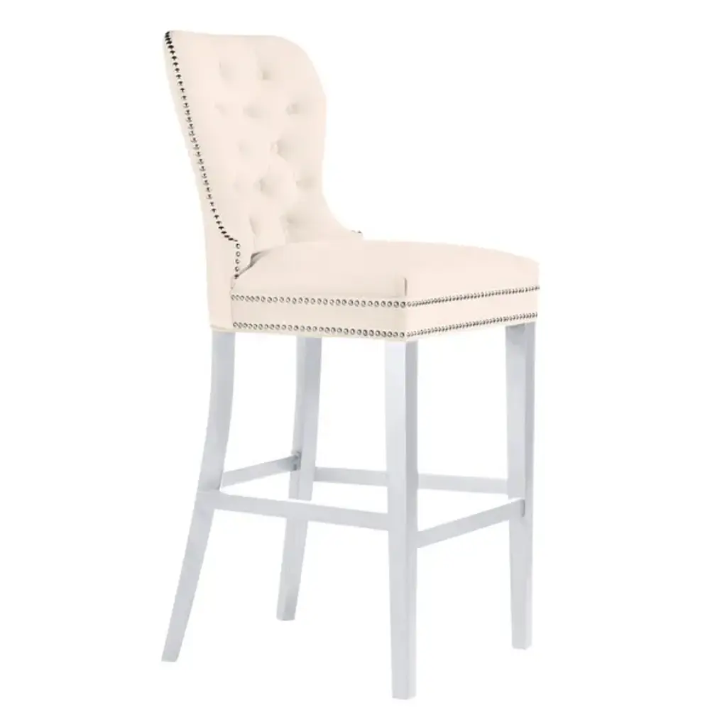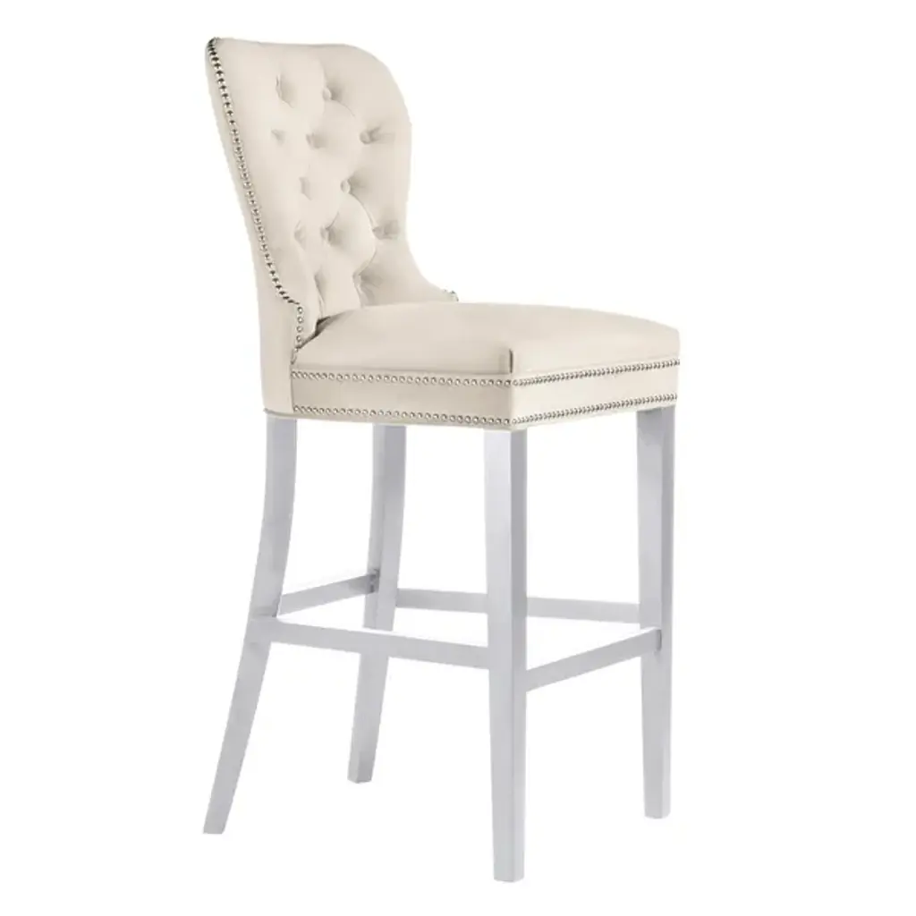 With its gentle curving silhouette, our sophisticated Charlotte Stool effortlessly elevates the style of any room. Plush upholstery and hand-applied nail head details atop wooden legs make our Charlotte Stool both refined and versatile. A pull ring matching the nailheads adorns the back of each stool. Shown in Bella Velvet Dove with bright nickel nailheads.Z Gallerie exclusiveCustomize it! Available in over 5 fabrics, 4 leg finishes, 4 nailhead and ring finishes, as well as the option to have no nailheads and/or no ring pull.Custom Orders: Custom Furniture is manufactured especially for you, which is why we do not accept cancellations, exchanges, or returns.