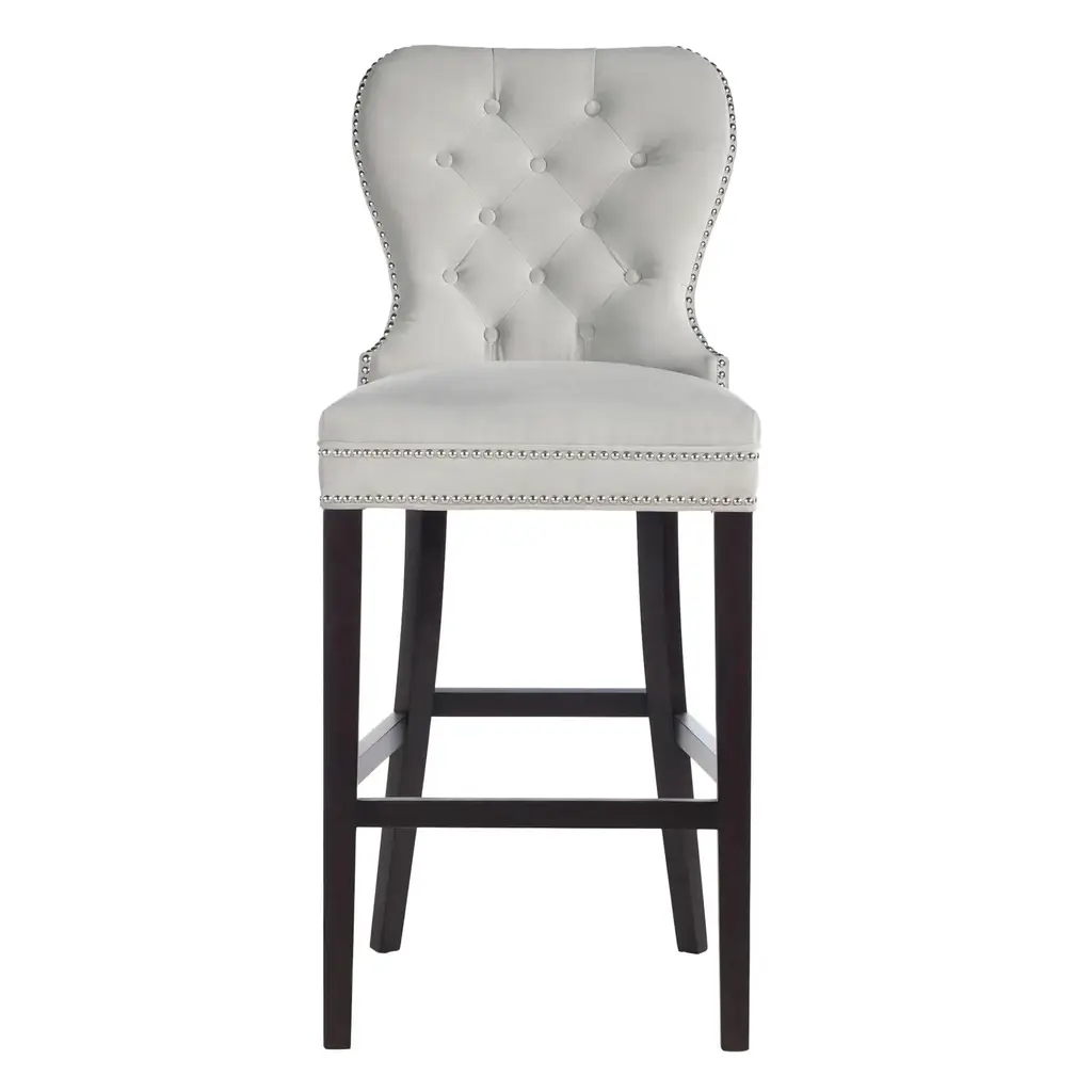 With its gentle curving silhouette, our sophisticated Charlotte Stool effortlessly elevates the style of any room. Plush upholstery and hand-applied nail head details atop wooden legs make our Charlotte Stool both refined and versatile. A pull ring matching the nailheads adorns the back of each stool. Shown in Bella Velvet Dove with bright nickel nailheads.Z Gallerie exclusiveCustomize it! Available in over 5 fabrics, 4 leg finishes, 4 nailhead and ring finishes, as well as the option to have no nailheads and/or no ring pull.Custom Orders: Custom Furniture is manufactured especially for you, which is why we do not accept cancellations, exchanges, or returns.