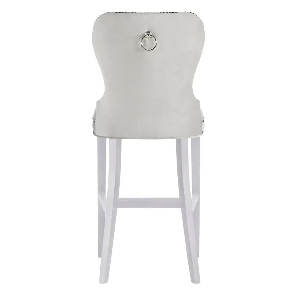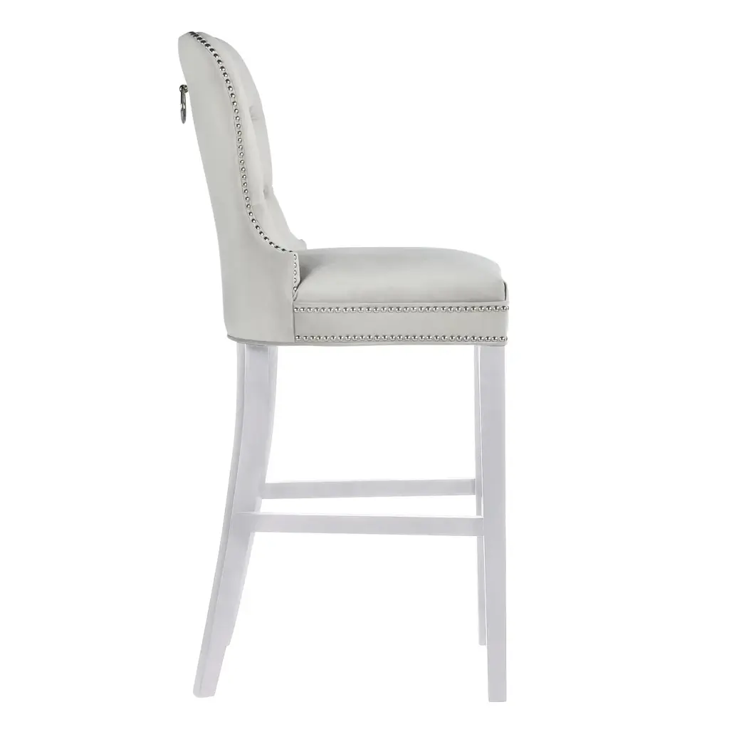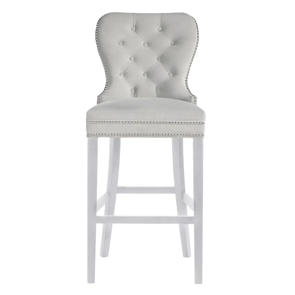 With its gentle curving silhouette, our sophisticated Charlotte Stool effortlessly elevates the style of any room. Plush upholstery and hand-applied nail head details atop wooden legs make our Charlotte Stool both refined and versatile. A pull ring matching the nailheads adorns the back of each stool. Shown in Bella Velvet Dove with bright nickel nailheads.Z Gallerie exclusive Customize it! Available in over 5 fabrics, 4 leg finishes, 4 nailhead and ring finishes, as well as the option to have no nailheads and/or no ring pull. Custom Orders: Custom Furniture is manufactured especially for you, which is why we do not accept cancellations, exchanges, or returns.