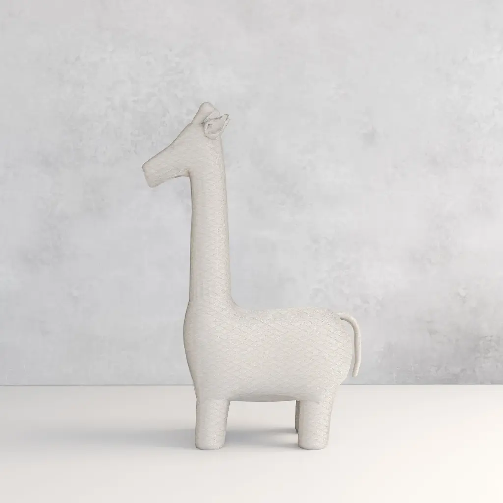 The cover of our Giraffe stool is made of cozy cotton yarn. The wood/plywood interior is topped with a spongy polyester cushion. This adorable accent piece will give your interior an eclectic touch. Add our playful Giraffe stool to your children's room or your own quirky space. Dimensions: 36.0W x 50.0H x 13.0D