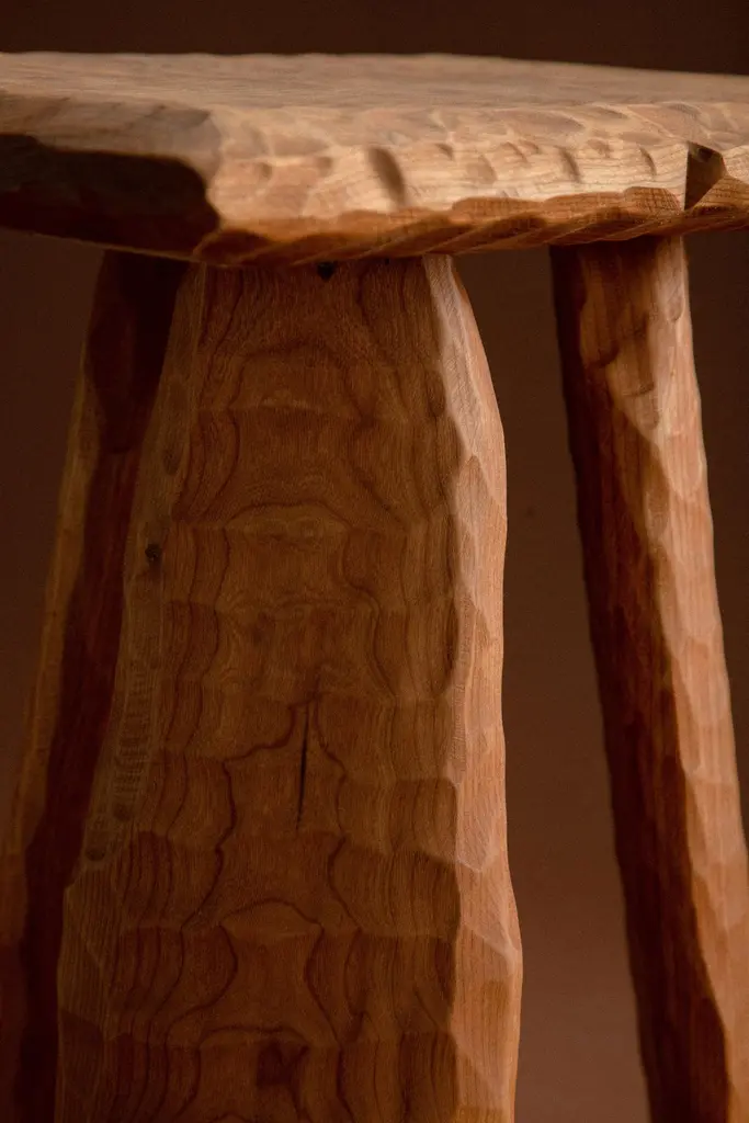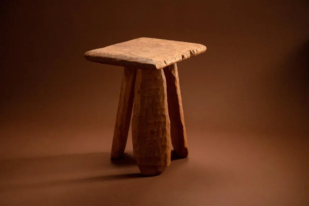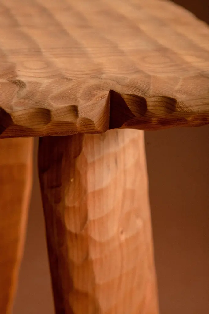 Cherry Textured Stool by Mambo Jambo StudioDimensions: D 33 x W 43.2 x H 43.2 cm.Materials: Cherry wood.Available in Cherry, Walnut, White Oak, and Mahogany. Please contact us.MAMBO JAMBO Studio is the furniture and art practice of Kelby Lee Singhaus. Primarily in wood, His work can be expressed as the liminal space between deliberation and spontaneity. The work, in its current form, is both additive and reductive to blend the visual weight of brutalist silhouettes with the innate warmth of carved and human-touched features.