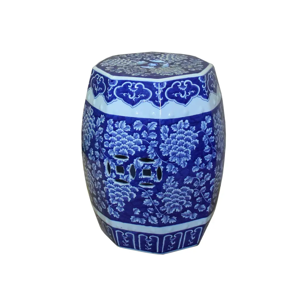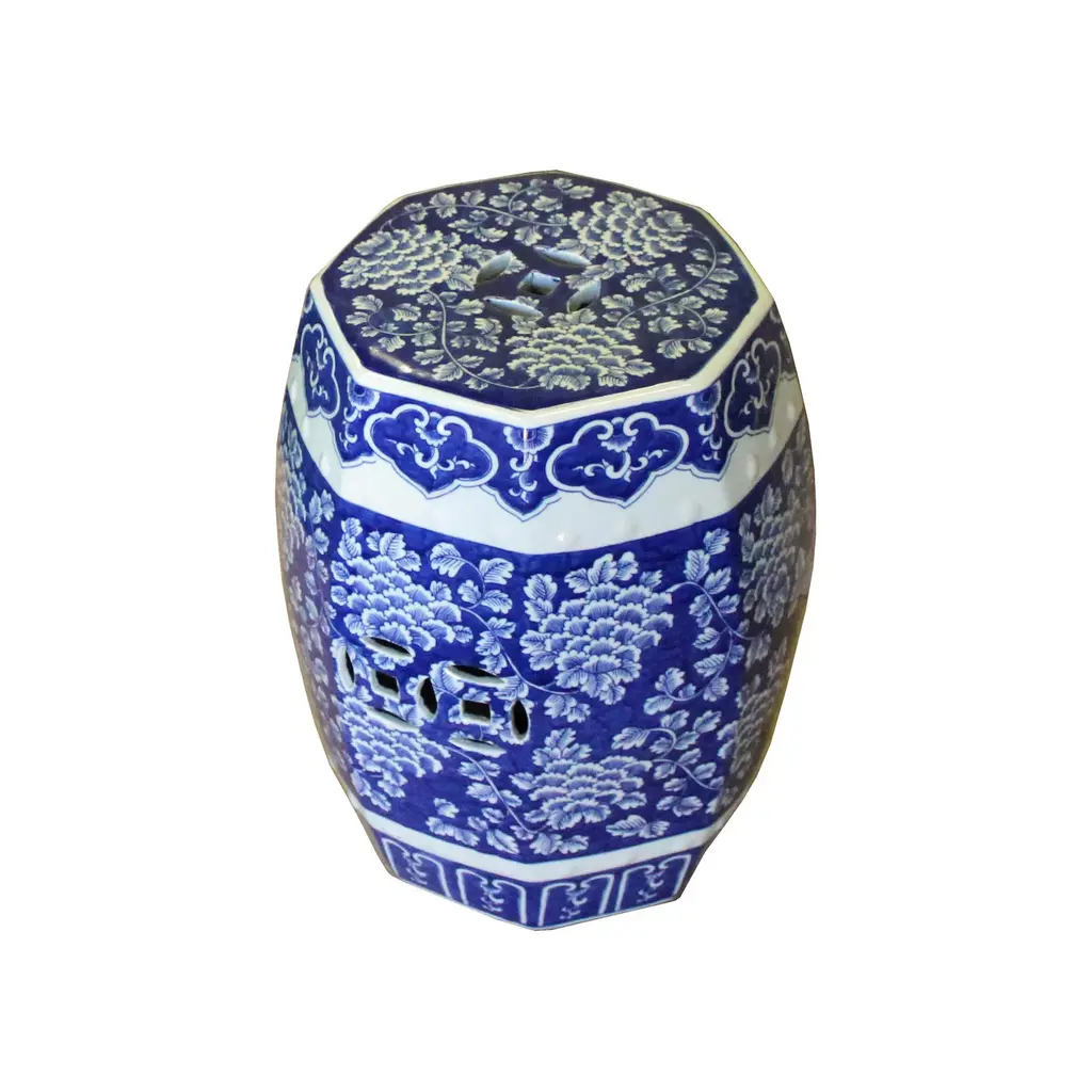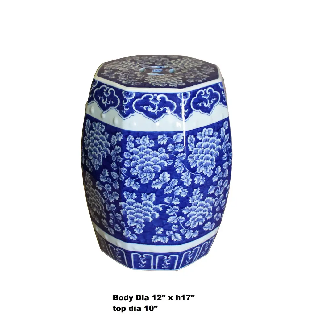 Chinese Blue & White Porcelain Floral Theme Octagon Stool Table