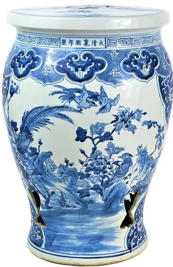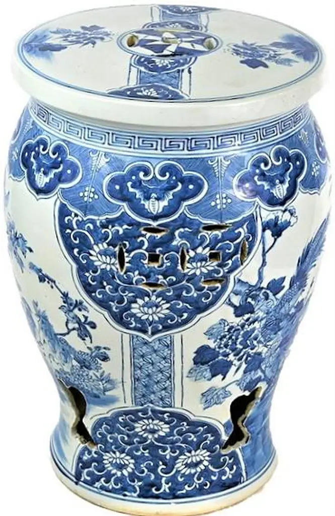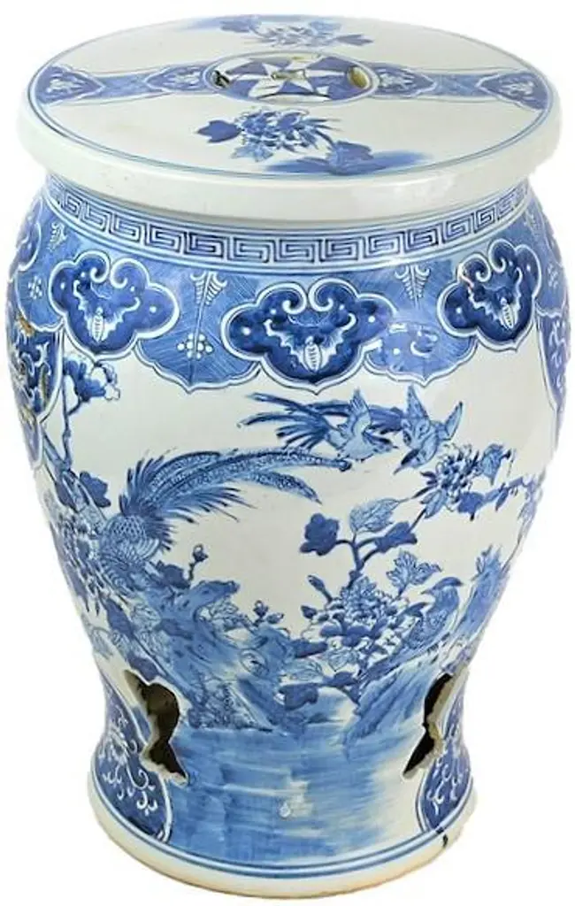 Chinoiserie Birds In Bush Balaster Garden Stool