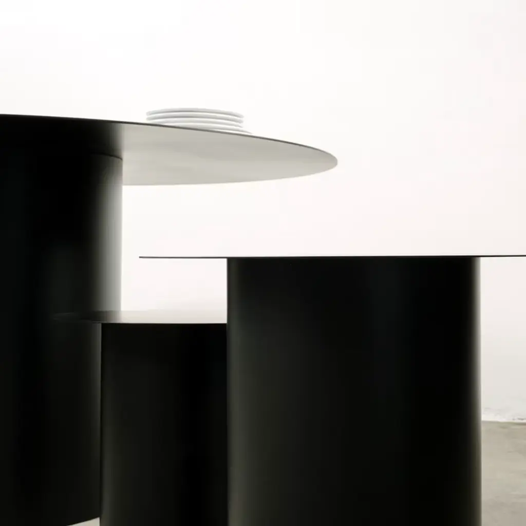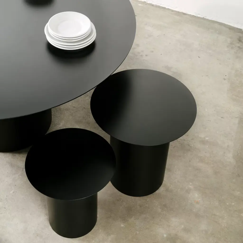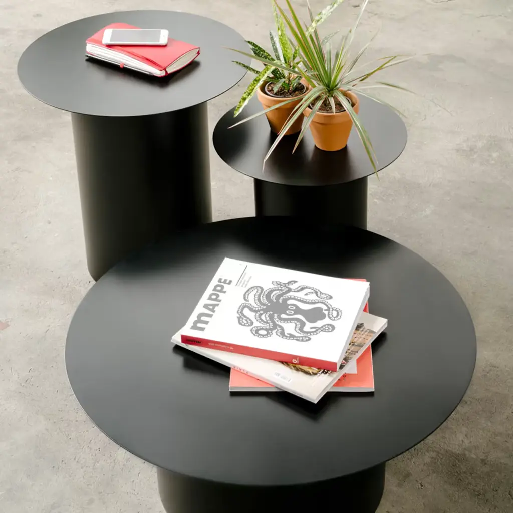 Inspired by the kinetic and abstract art of American sculptor Alexander Calder, Marco Ripa has created the extensive Chiodo Collection of pieces sharing the same shape but different dimensions and functions. This stool is crafted of black, hand-welded iron and makes a charming and functional deckchair both indoor and outdoor. It can also be used as a bedside or living room table, and can be combined with the Chiodo 7 table together with Chiodo 4 and Chiodo 6. Available also in white, the indoor version is spray-painted and the outdoor variant is galvanized and powder-coated upon request.