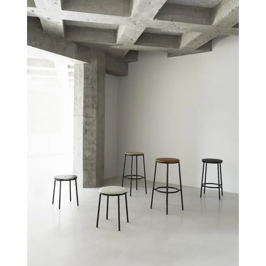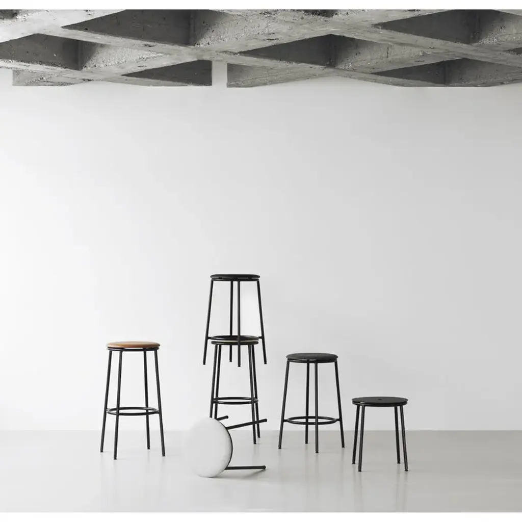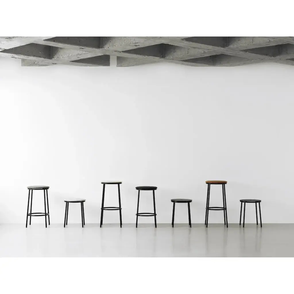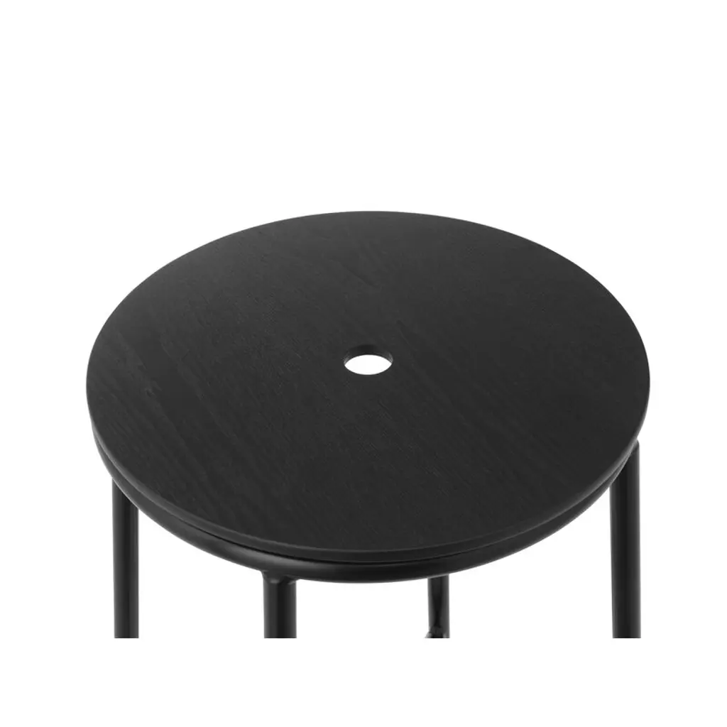 Normann Copenhagen's Circa is a minimalist and timeless stool consisting of a slender steel tube frame and a black lacquered oak veneer seat. Designed by Simon Legald, the stool gets its name from the round elements: the circular shape is repeated in the seat as well as the hole in the middle of the seat, which makes it easy to carry the stool from one place to another. The classic but contemporary Circa stool fits well next to the kitchen island, around the dining table or as extra seating for guests.