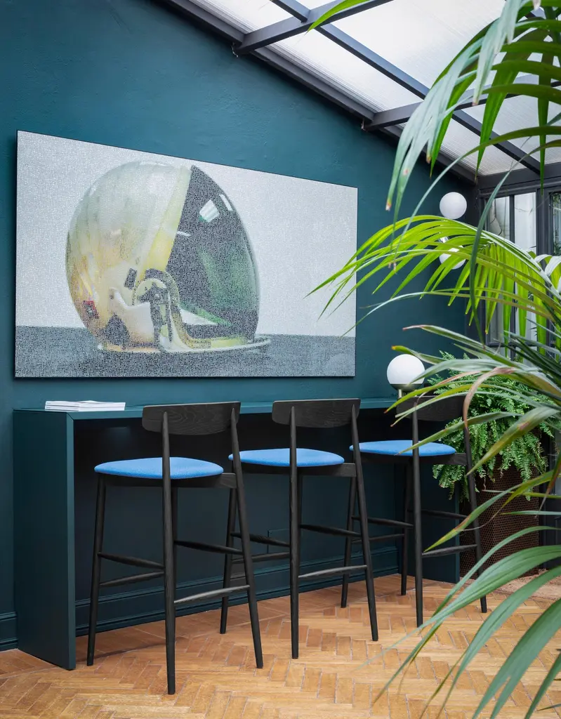 Claretta Small Stool In Tanimo Ultramarine Blue Upholstery With Black Ash Frame