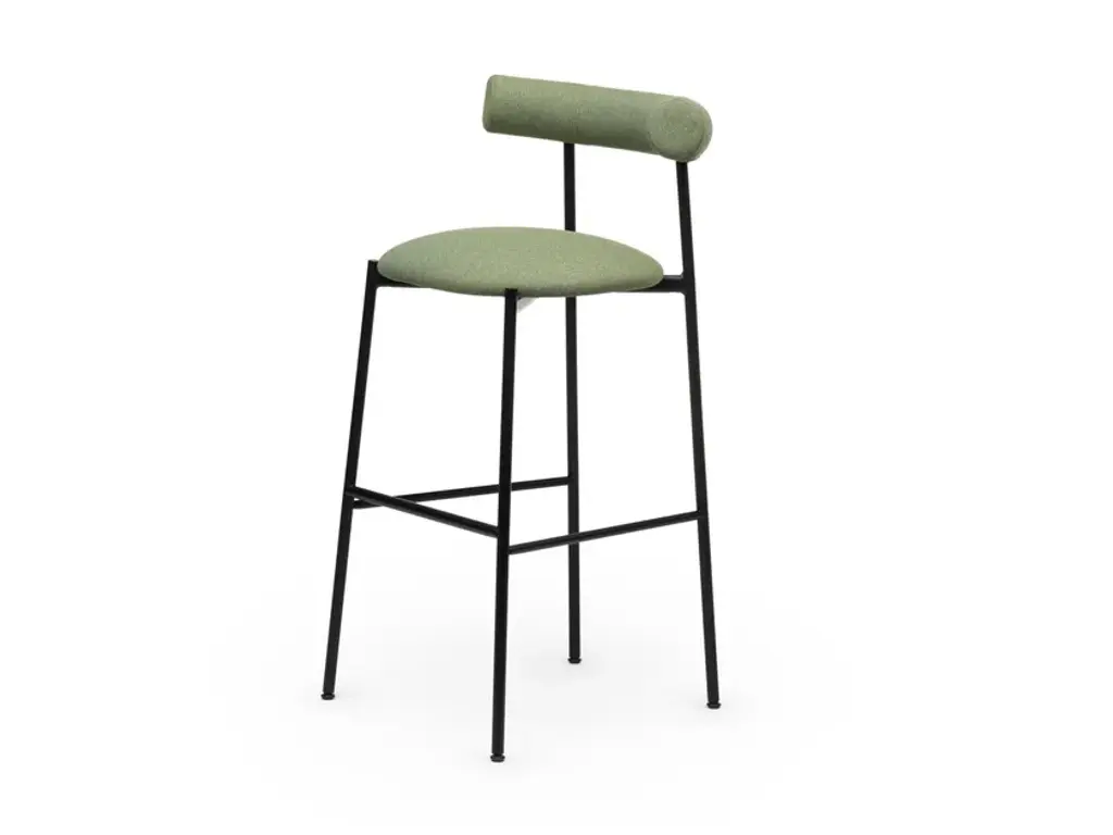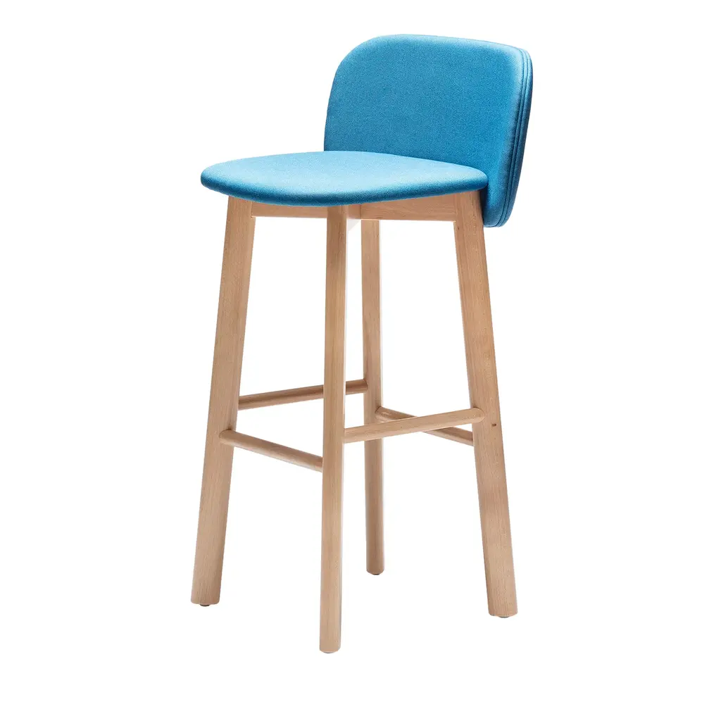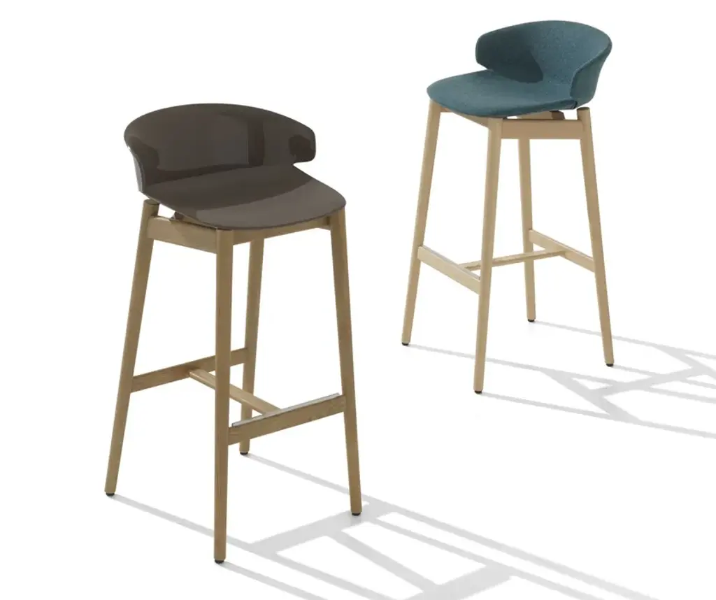 Classy 1097M is a stool with backrest and footrest, made with ashwood frame and upholstered shell, covered in fabric. Available in two heights.In Classy, practical elements and an unusual look are brought together in the distinctive representation of a gently shaped shell, guaranteeing the highest standards of comfort and ergonomics. The elegant and versatile design are further highlighted by the alternating matt and glossy surfaces. The collection, featuring a chair, chair with armrests and stool with polypropylene shell, is further enriched. The shell is now proposed in the version with fabric-upholstered seat, available on all existing frames. The Classy collection thus becomes the most extensive in the catalogue, offering a broad range of solutions and a free choice of pairings. For indoor and outdoor spaces.