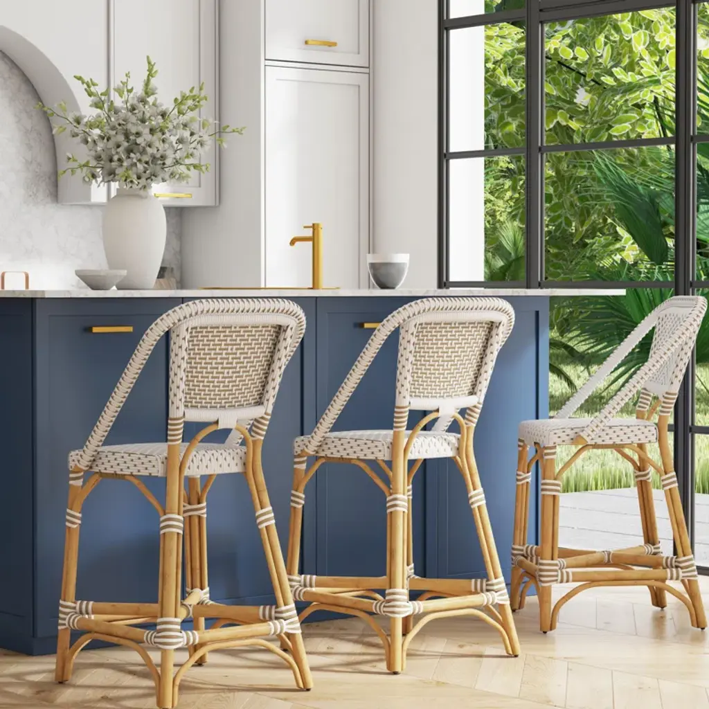 Named after the sleepy surf town in Southern California, the Clemente Rattan Stool in Natural Brown/White is a reimagination of the classic bistro style. Crafted from a natural rattan pole and white synthetic weave, this versatile stool is suitable for both indoor and outdoor settings.