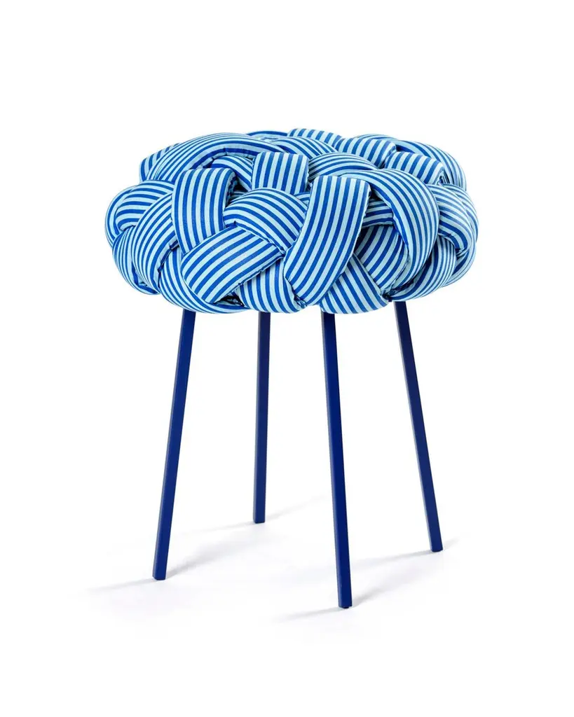 This contemporary stool is part of the Cloud collection, which was created around the concept of trees. These contemporary stools and benches are made with cotton fabric and foam stripes, woven and stitched by hand. Each piece is unique, as the result of the manual process to fabrication. Dimensions may vary within a 5cm limit due to manual manufacturing process.